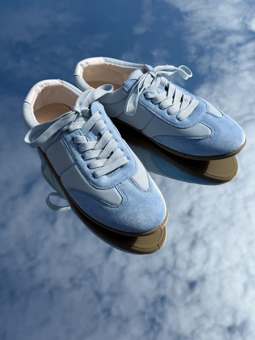 Nízké tenisky na zavazování, kombinace broušeného a lesklého sametového vzhledu.