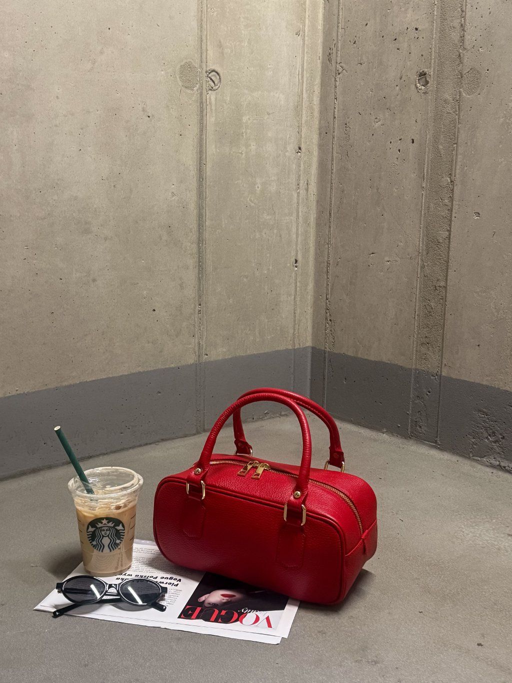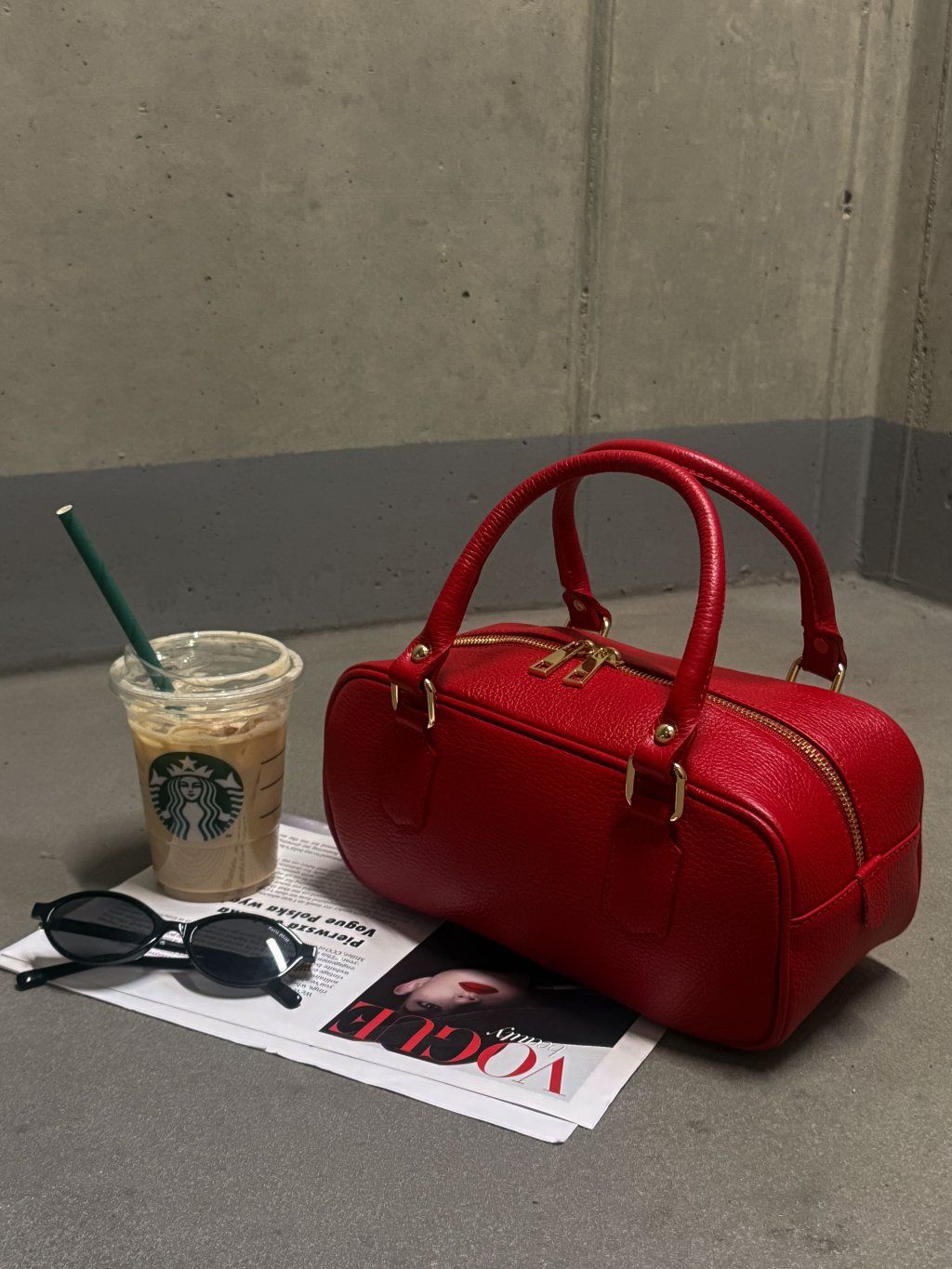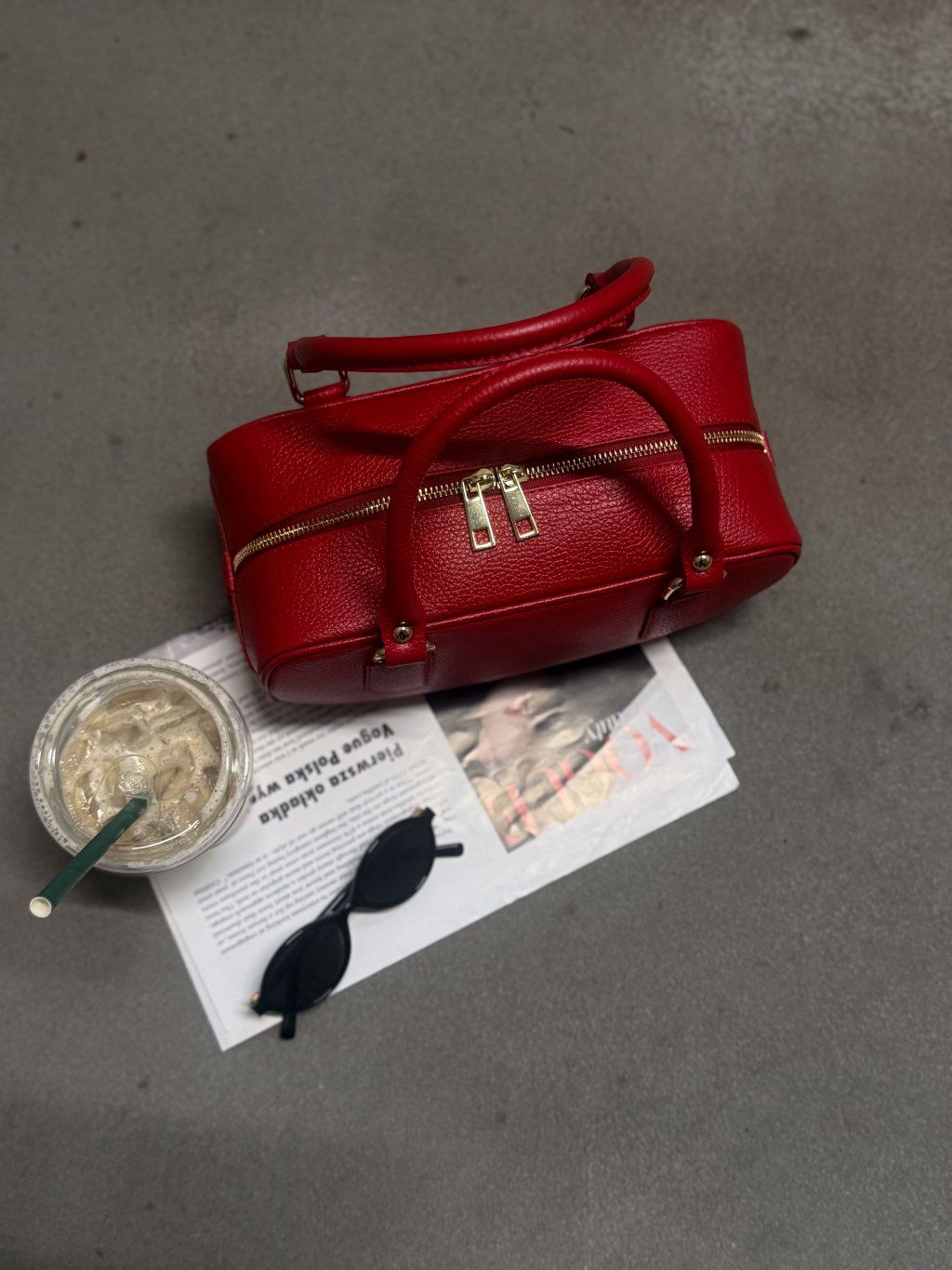 HRANATÁ KOŽENÁ KABELKA red