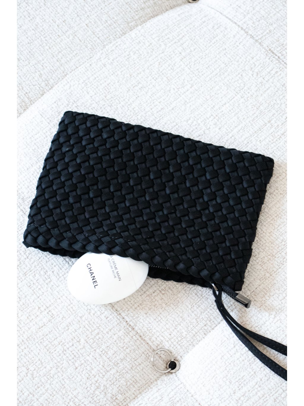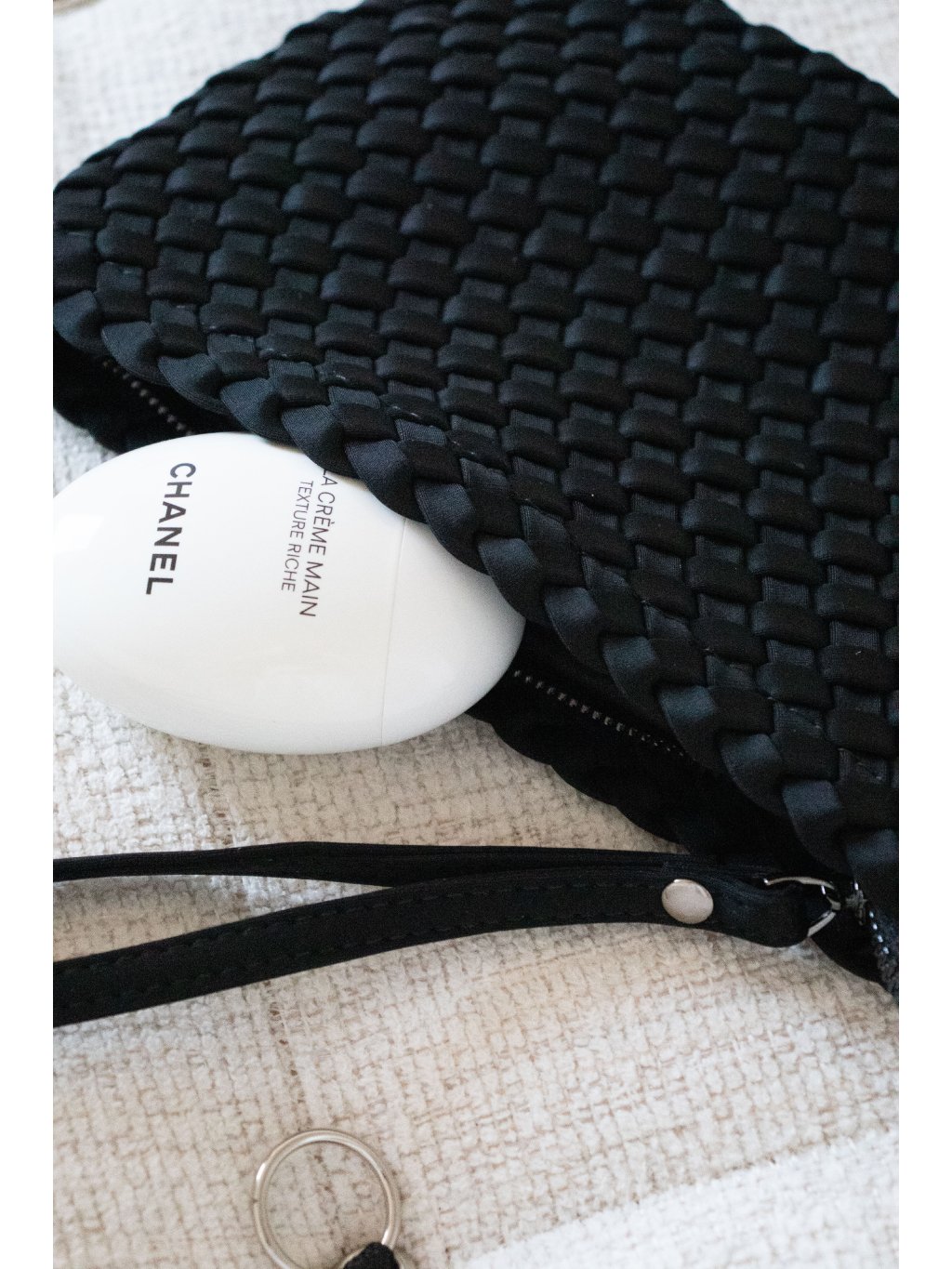 Kosmetická taška, která má poutko na uchytnutí. Zapíná se na zip, detaily jsou ve stříbrné barvě. Měkký materiál.
