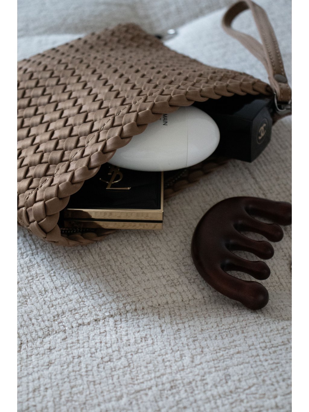 Kosmetická taška, která má poutko na uchytnutí. Zapíná se na zip, detaily jsou ve stříbrné barvě. Měkký materiál.