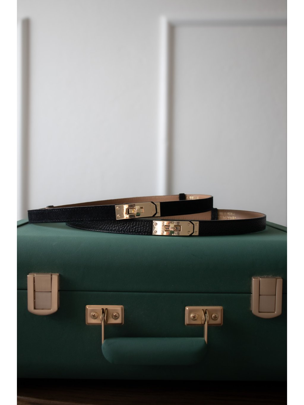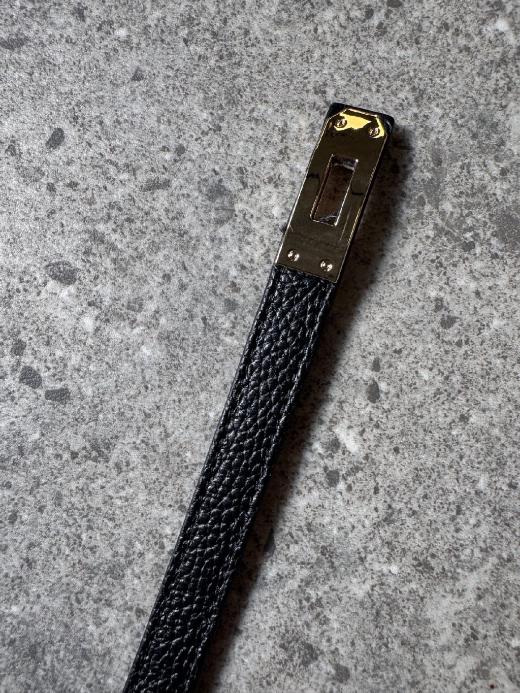 KOŽENÝ POSUVNÝ SLIM PÁSEK SE ZLATOU SPONOU black