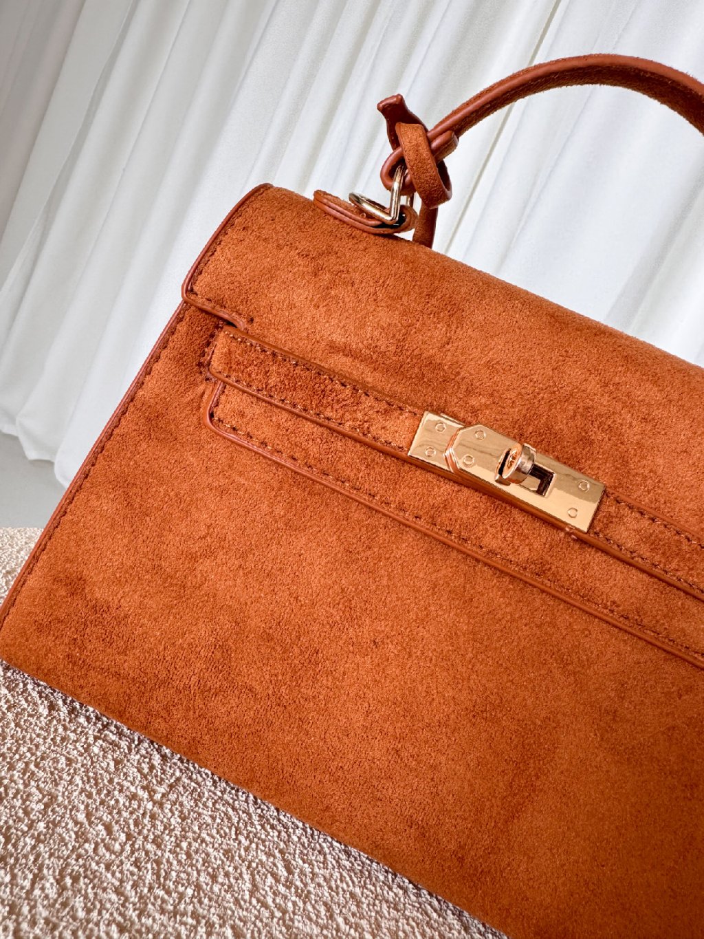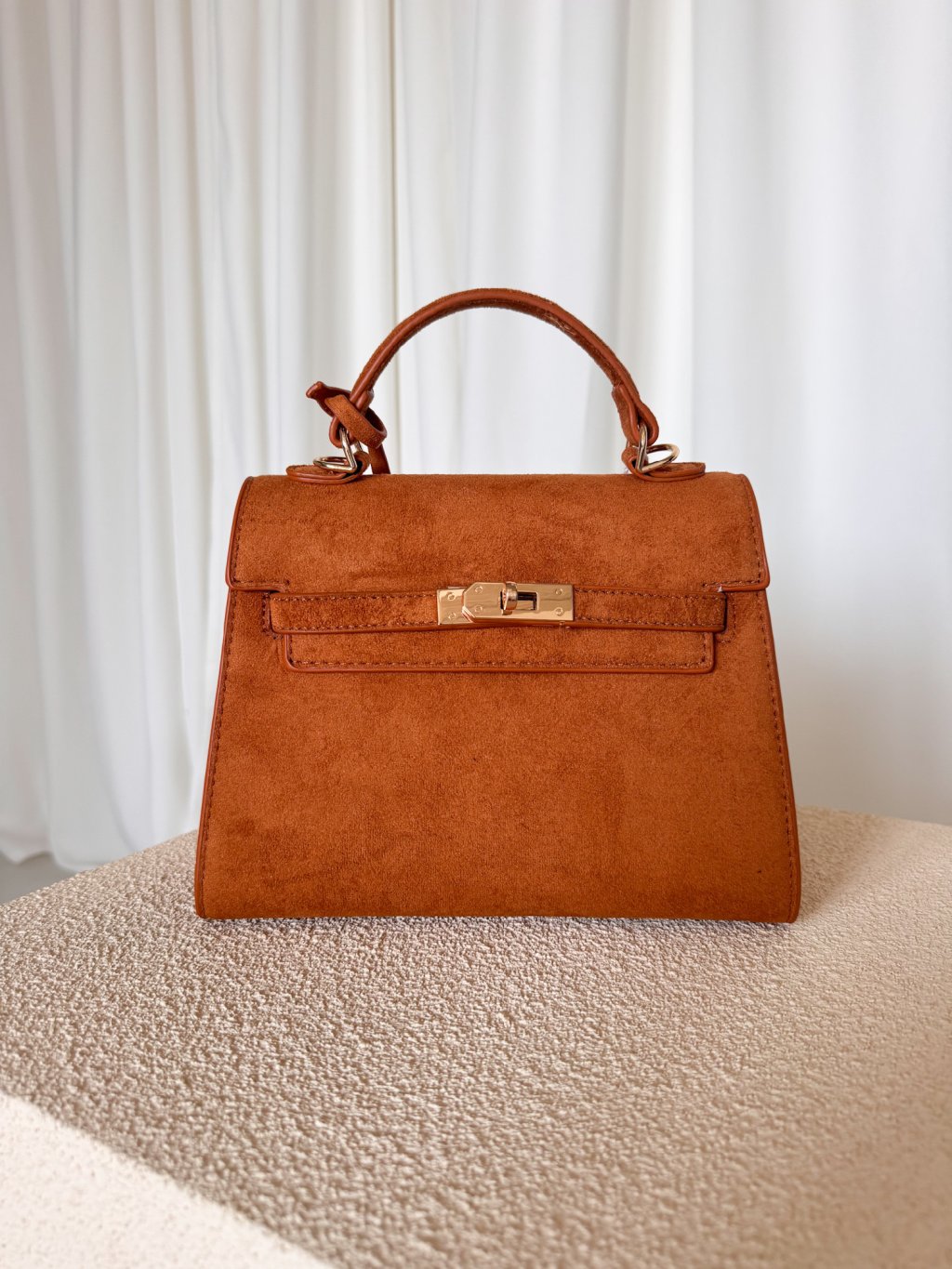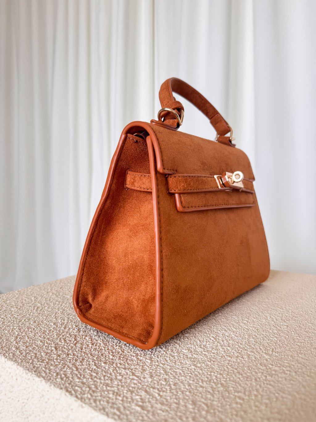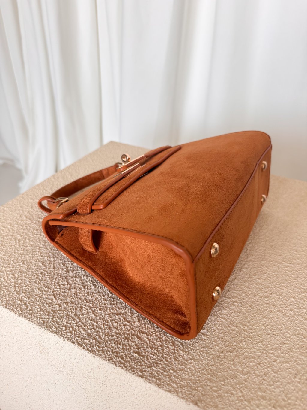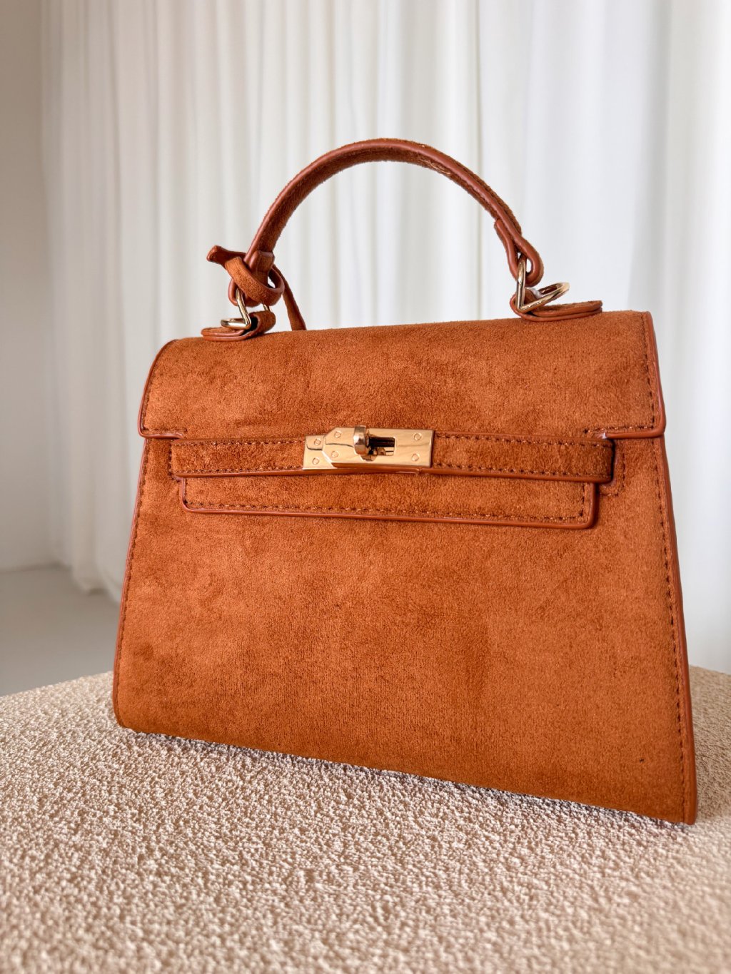 MALÁ SEMIŠOVÁ KABELKA SE ZLATÝM ZÁMKEM camel