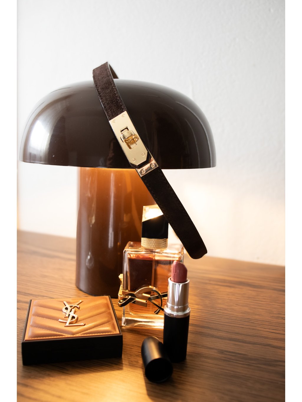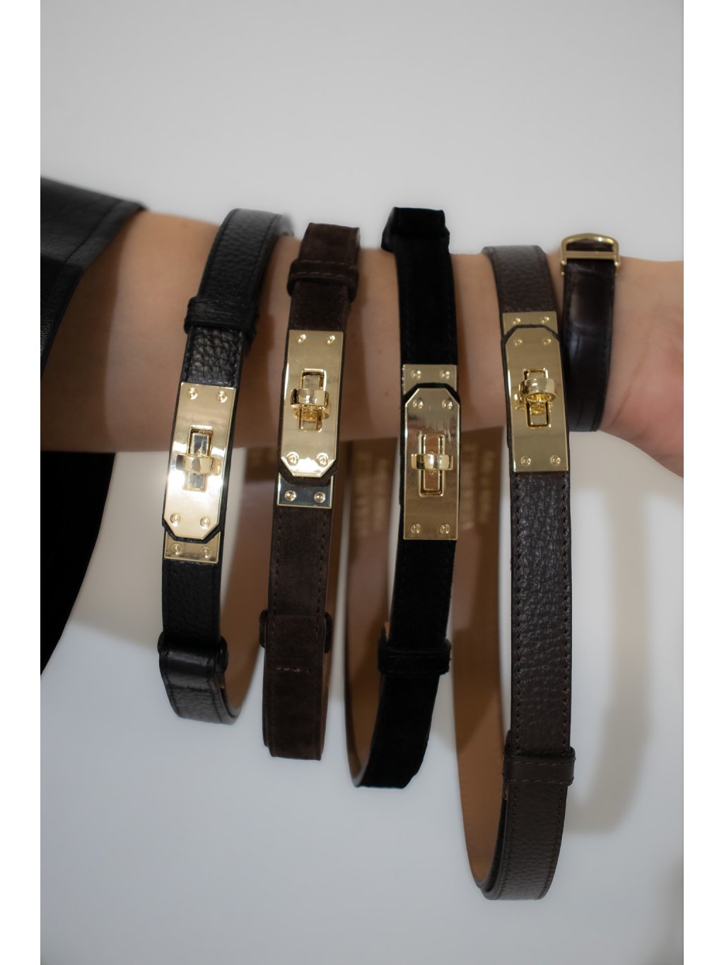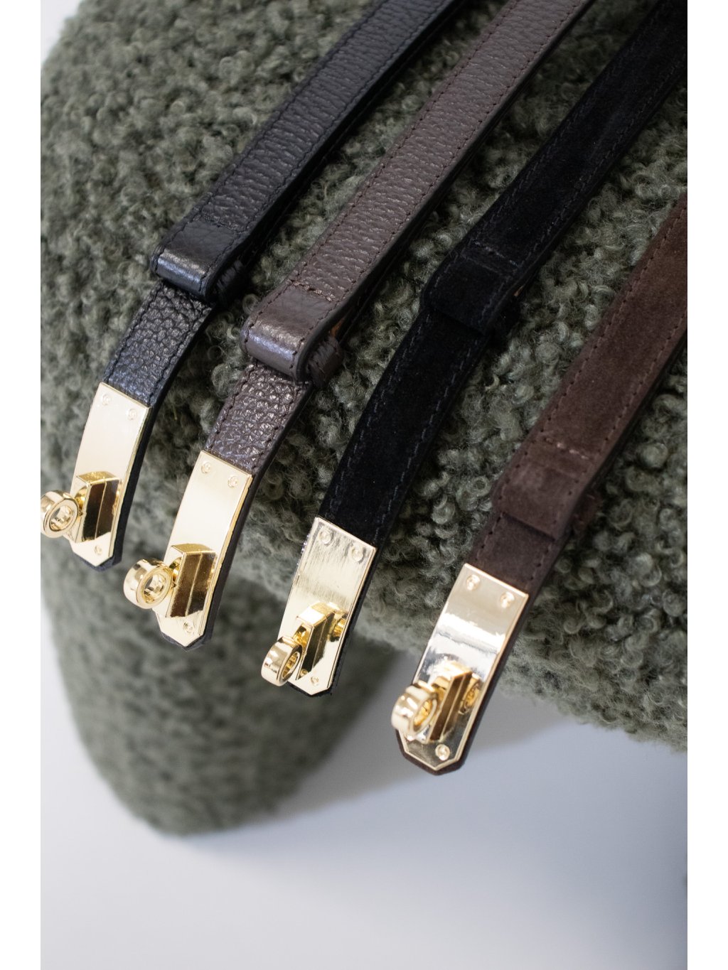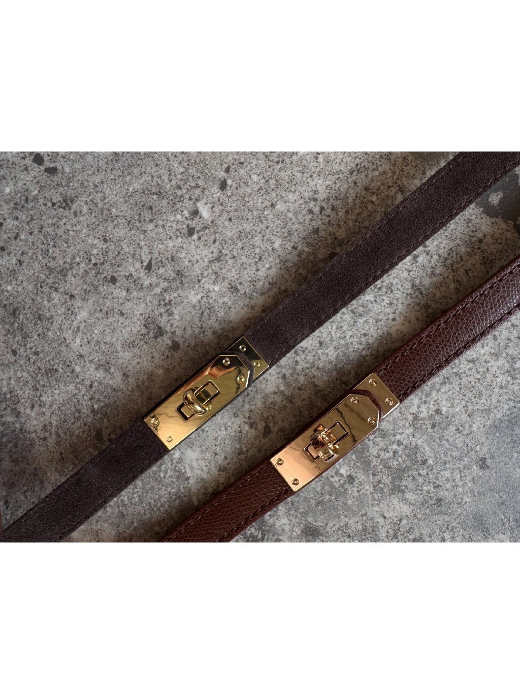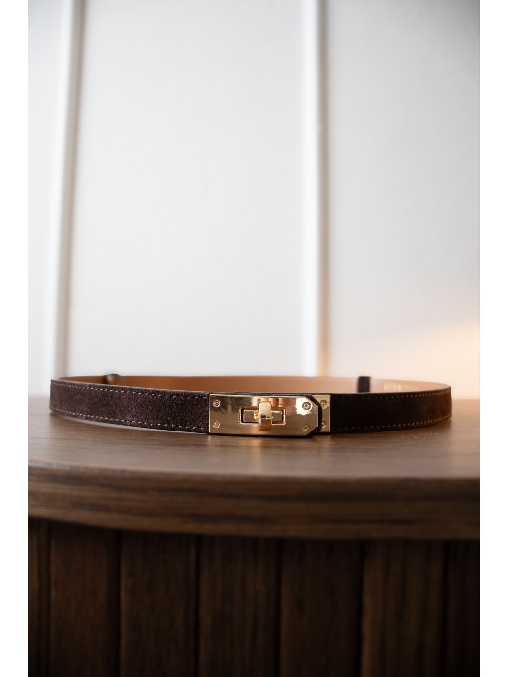 SEMIŠOVÝ KOŽENÝ POSUVNÝ SLIM PÁSEK SE ZLATOU SPONOU brown