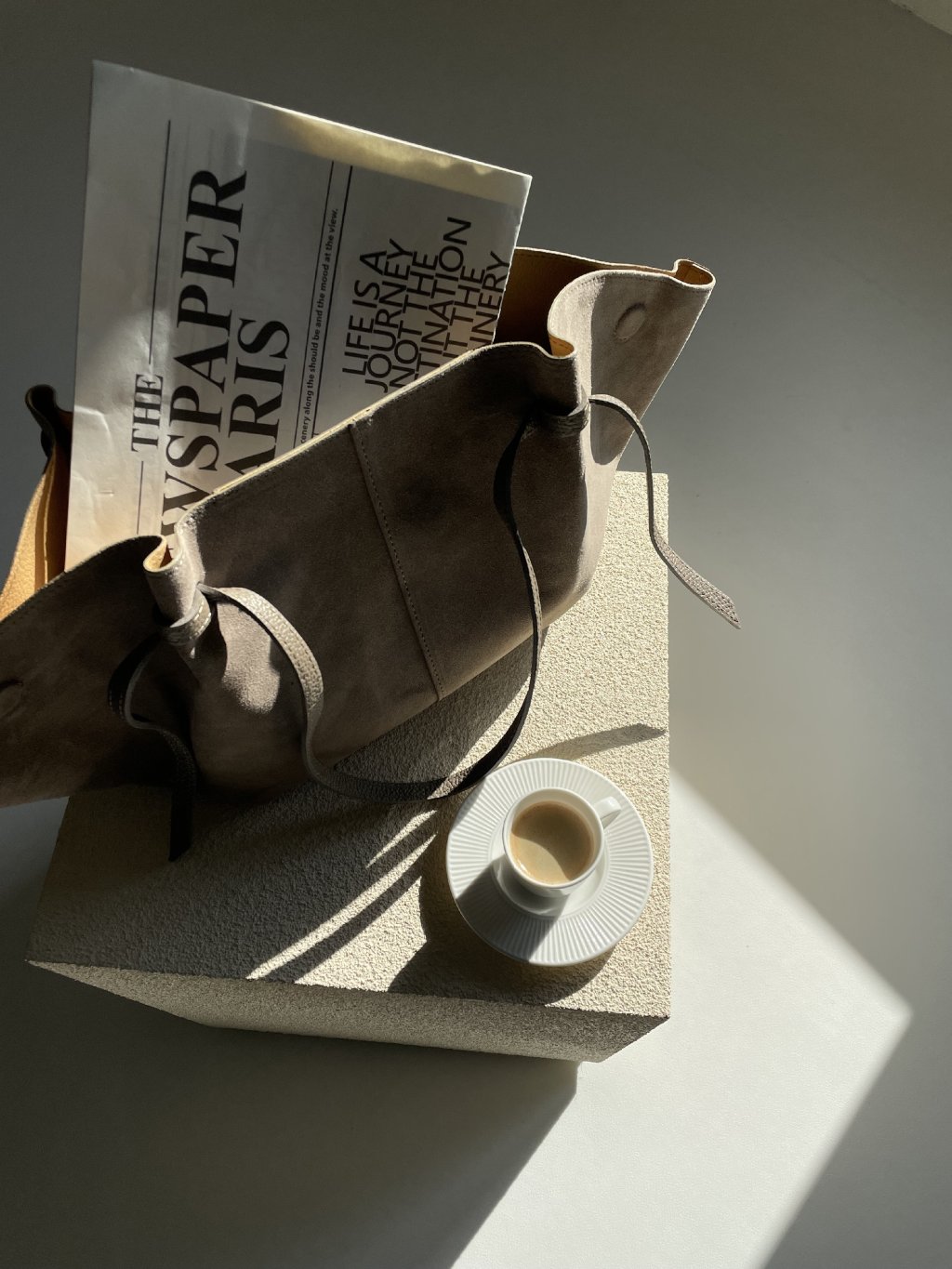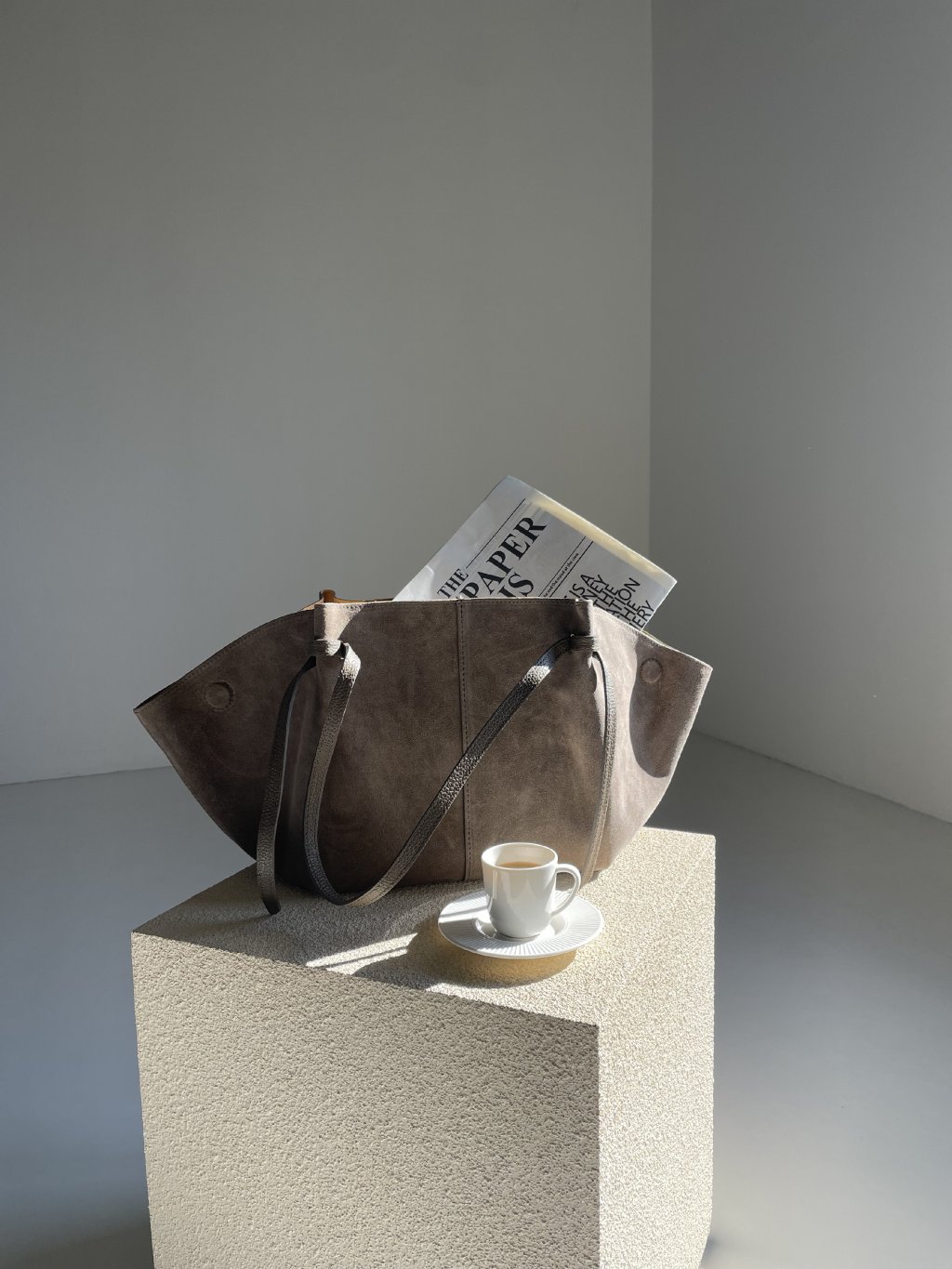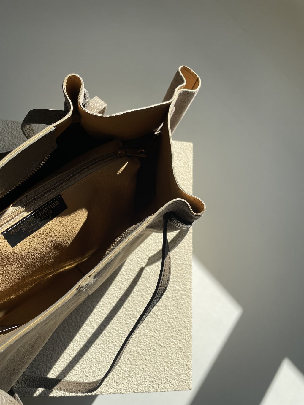 VELKÁ KOŽENÁ SEMIŠOVÁ SHOPPER BAG taupe