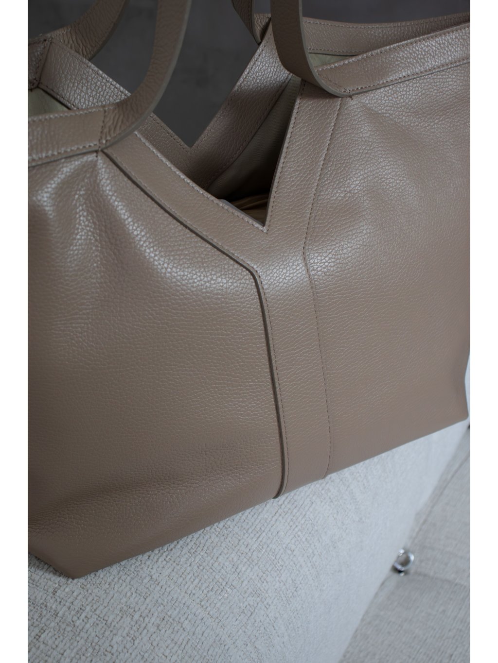 VELKÁ KOŽENÁ SHOPPER BAG "Y" beige