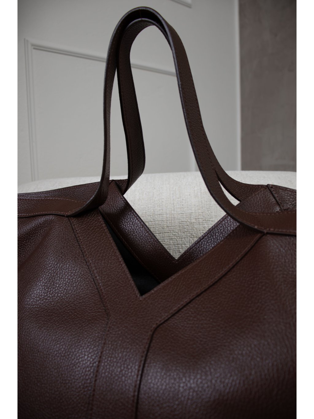 VELKÁ KOŽENÁ SHOPPER BAG "Y" choco