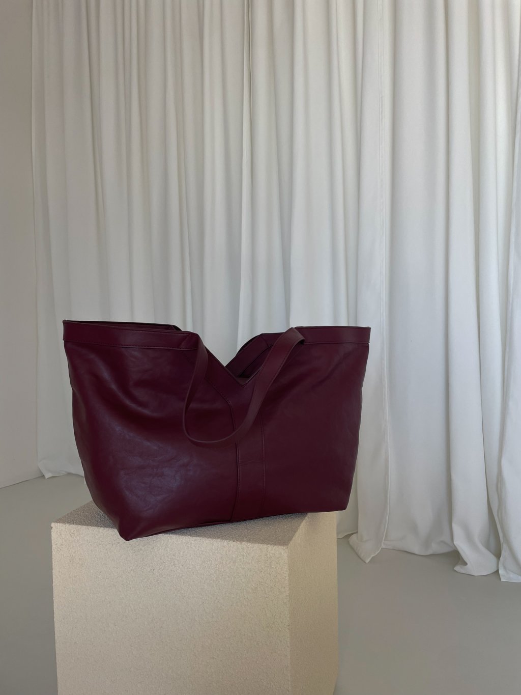 VELKÁ KOŽENKOVÁ SHOPPER BAG bordo