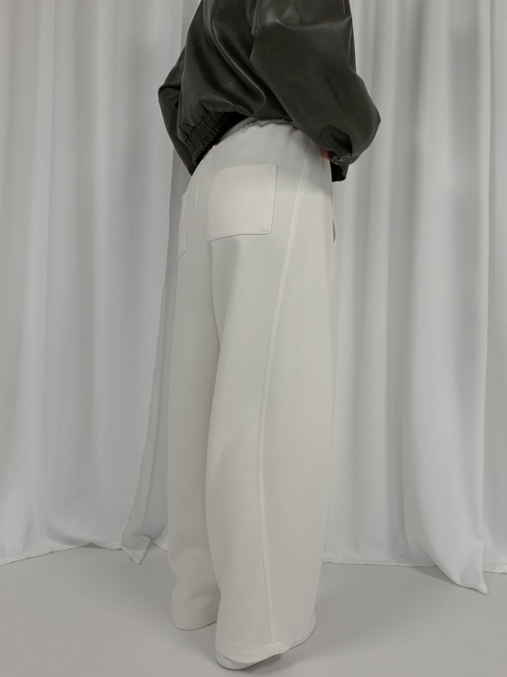 Bavlněné tepláky, široký balonový střih, v pase je guma a šňůrky na stažení. Boční i zadní kapsy, podšívka, na bocích výraznější prošití.
