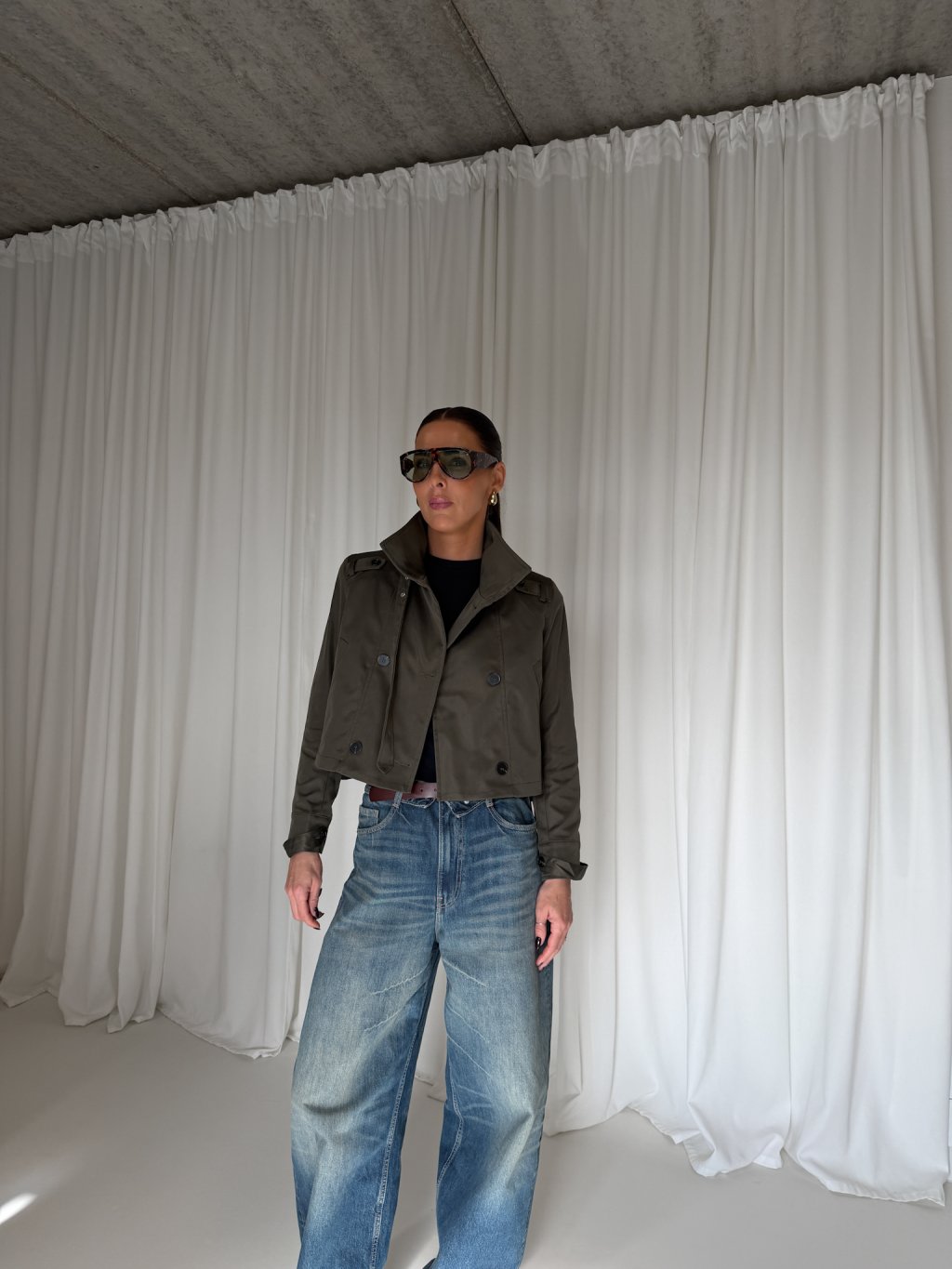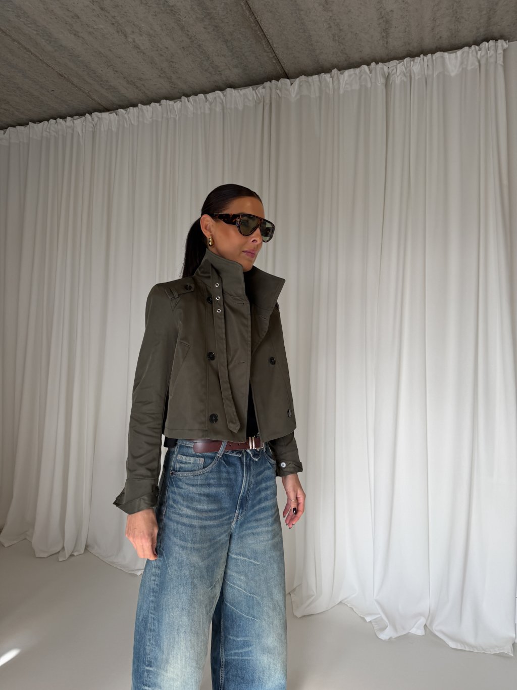 CROPPED TRENCH SE STOJÁČKEM dark khaki