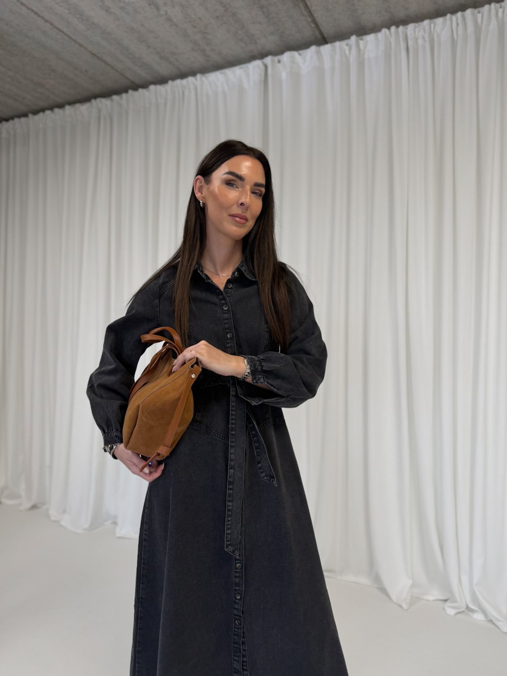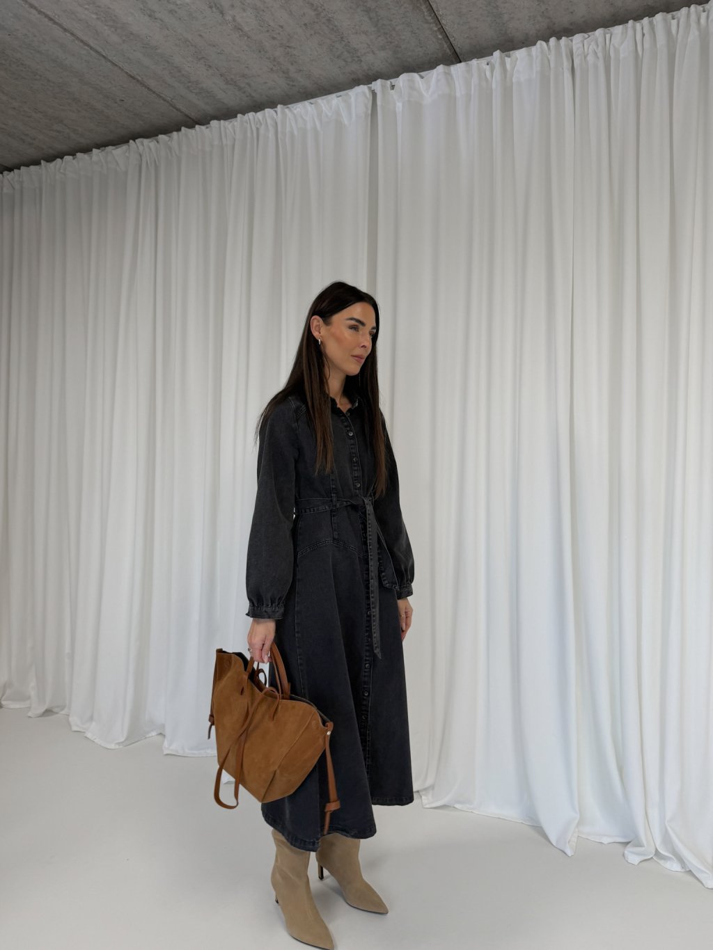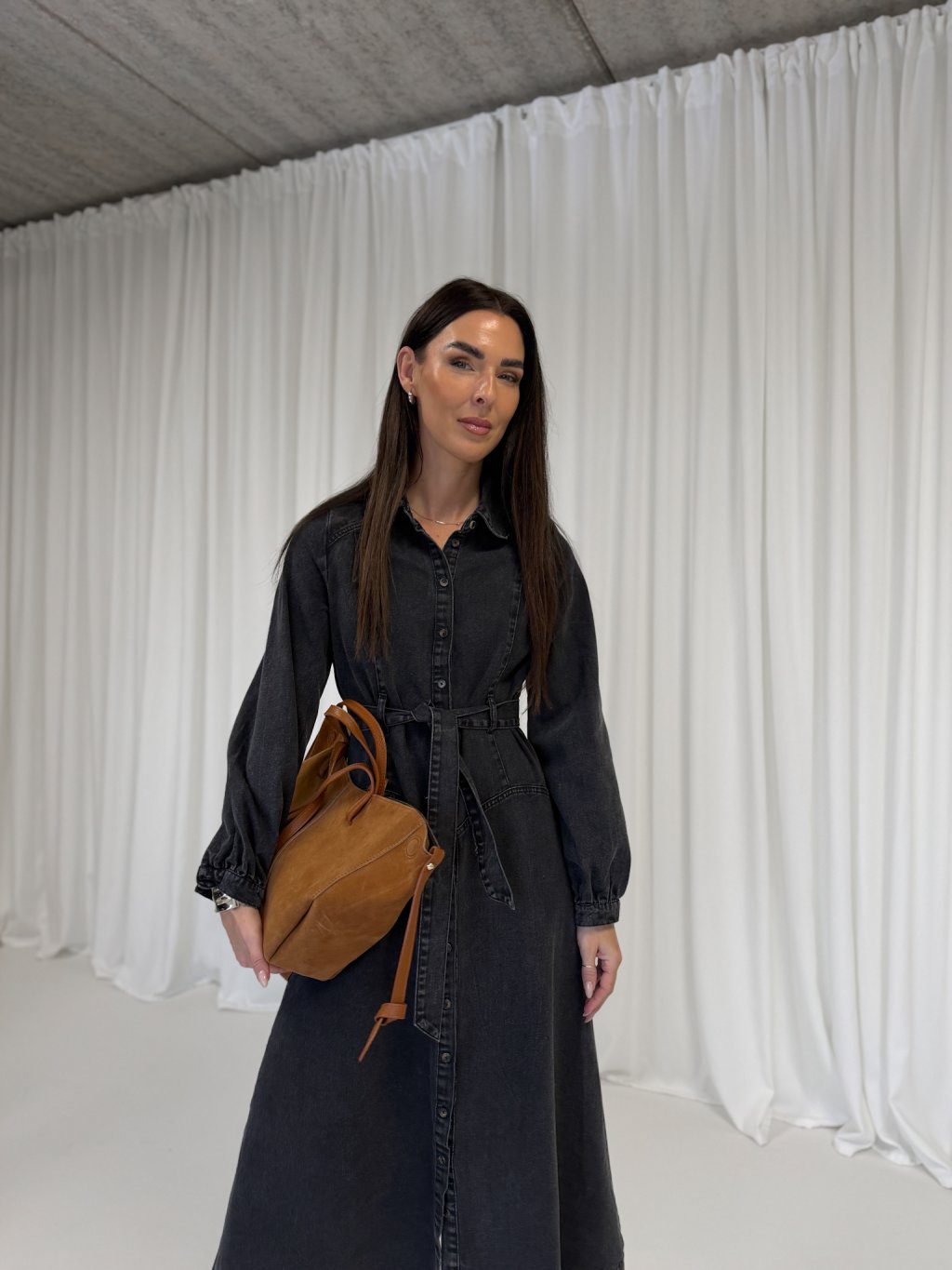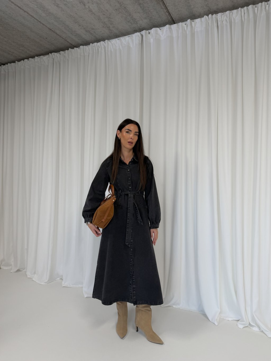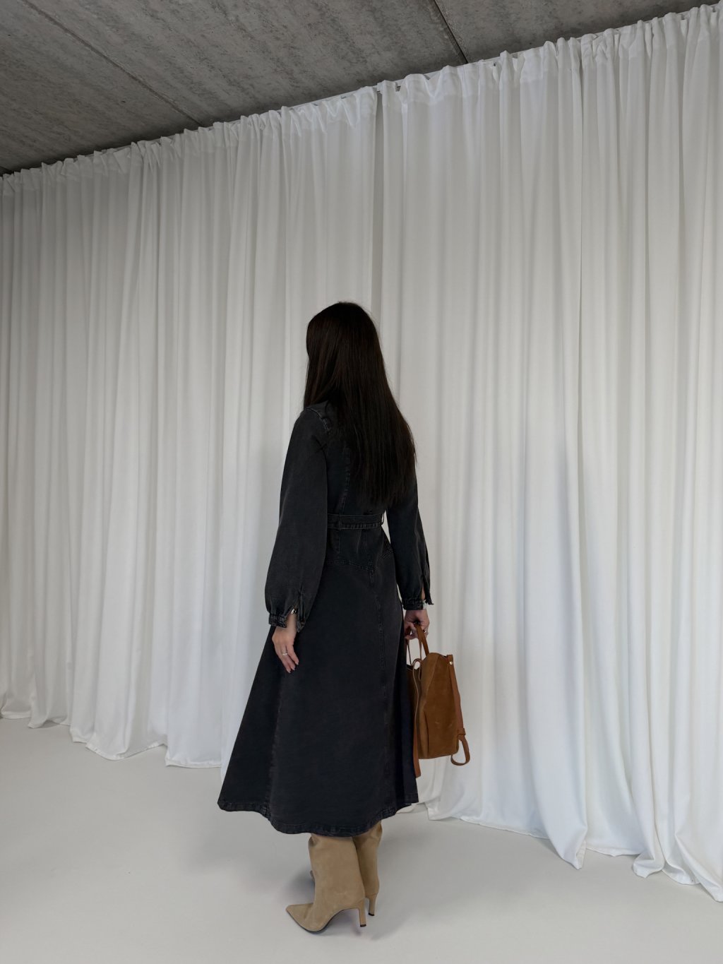 DENIM MIDI ŠATY S PÁSKEM black