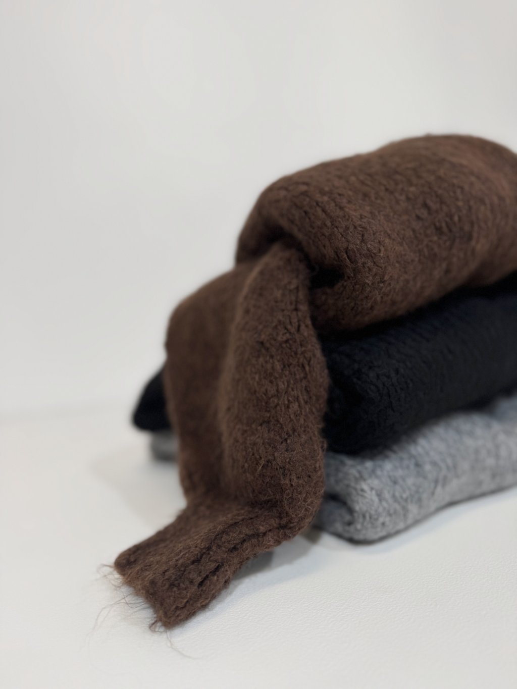 Měkký svetr oversized střihu, délka do pasu, spadený ramenní šev, rukávy ukončeny pružným lemem, u krku do stojáčku. Svetr je hutný, zahřeje.