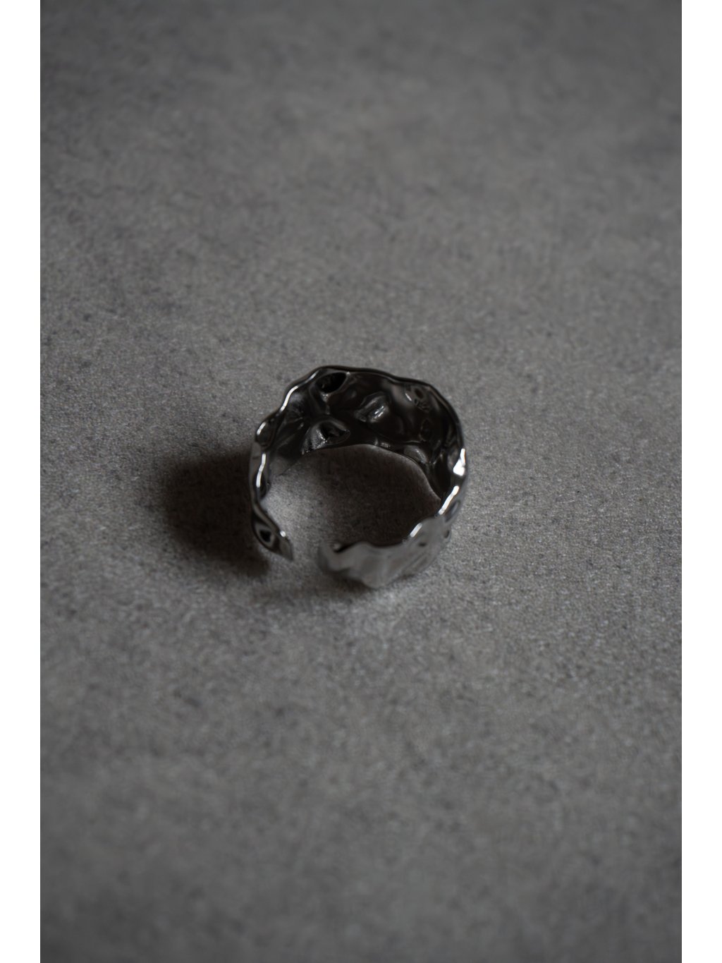 Otevřený kovový prsten s tepaným vzhledem. Lze kombinovat s tepaným náramkem i náušnicemi - viz související produkty.