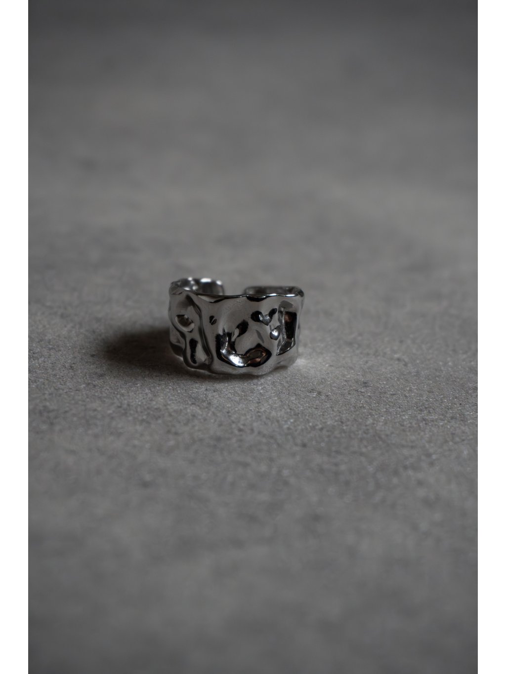 OTEVŘENÝ TEPANÝ PRSTEN UŽŠÍ silver