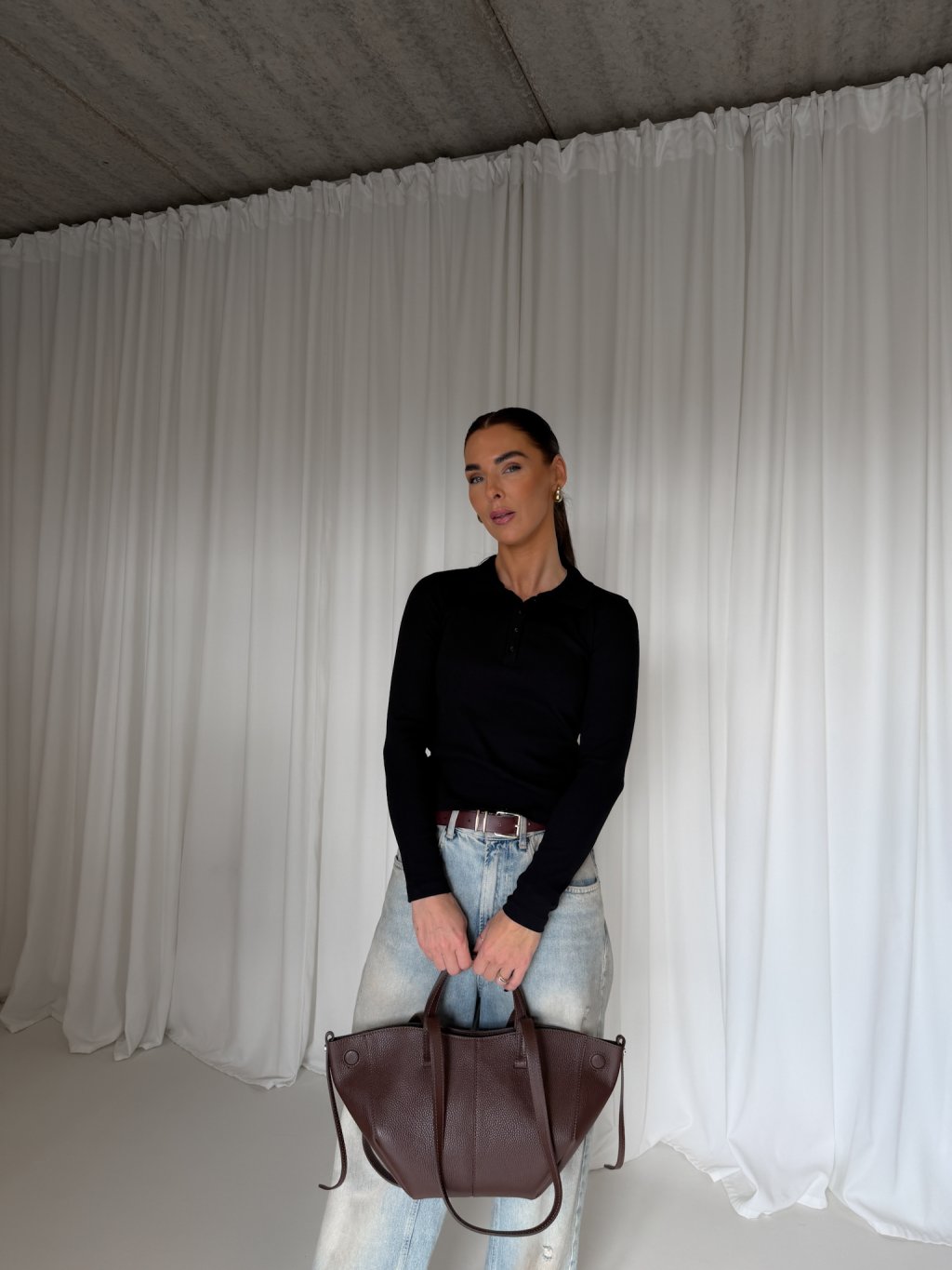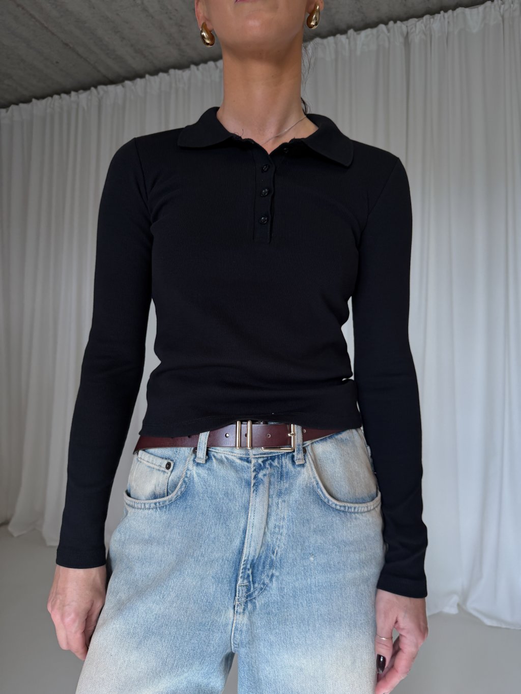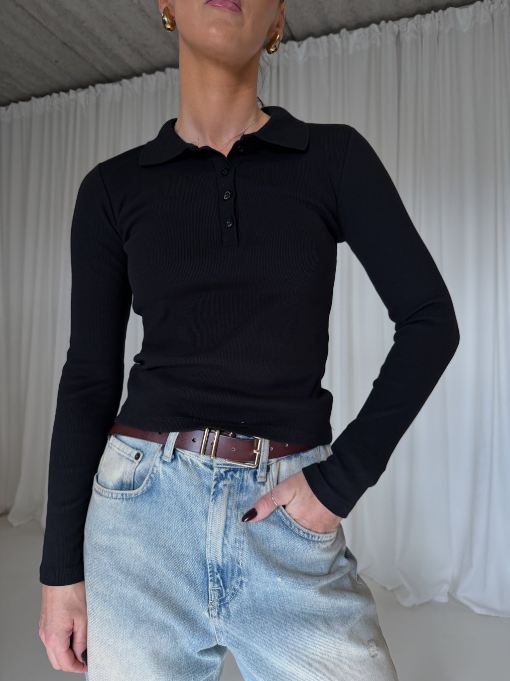 Bavlněná polo halenka, užší střih, od krku rozepínací na několik knoflíčků v černé barvě.