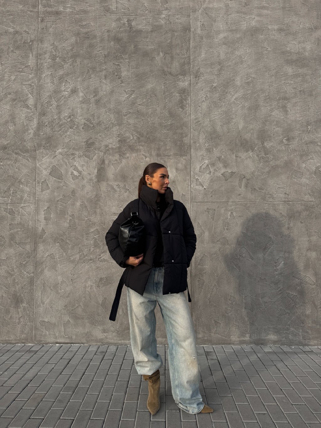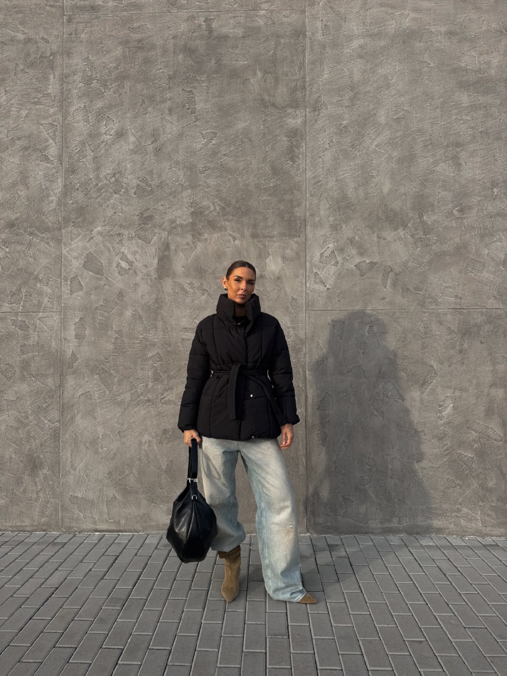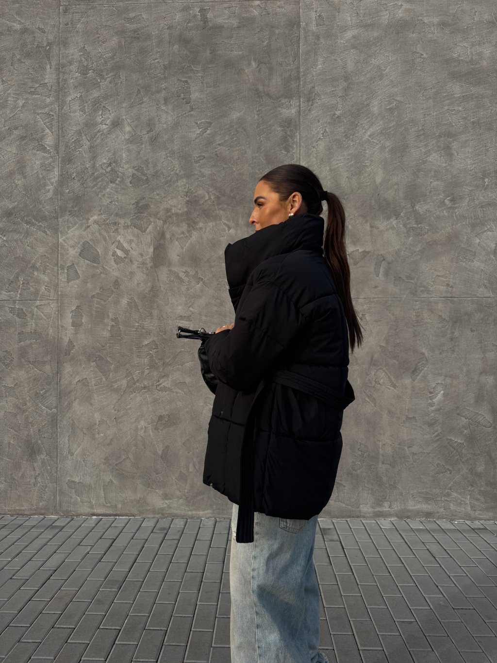 PROŠÍVANÁ BUNDA S PÁSKEM black