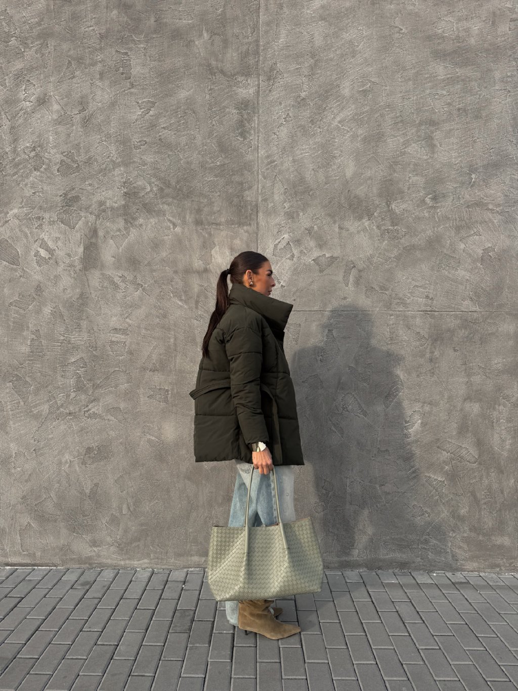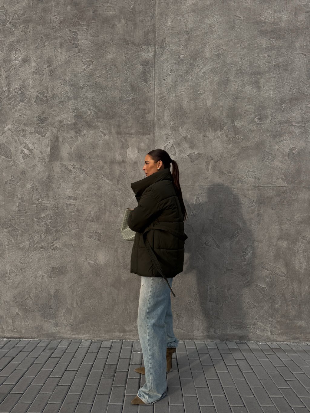 PROŠÍVANÁ BUNDA S PÁSKEM khaki