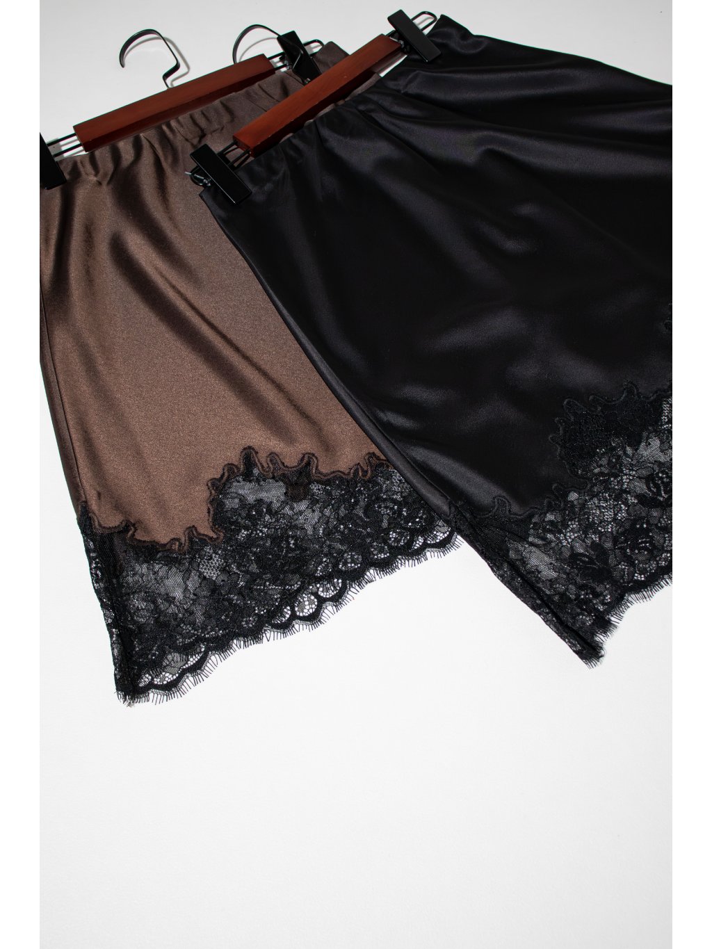 SATÉNOVÁ SUKNĚ S KRAJKOU black