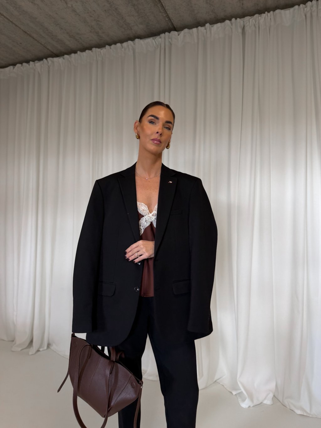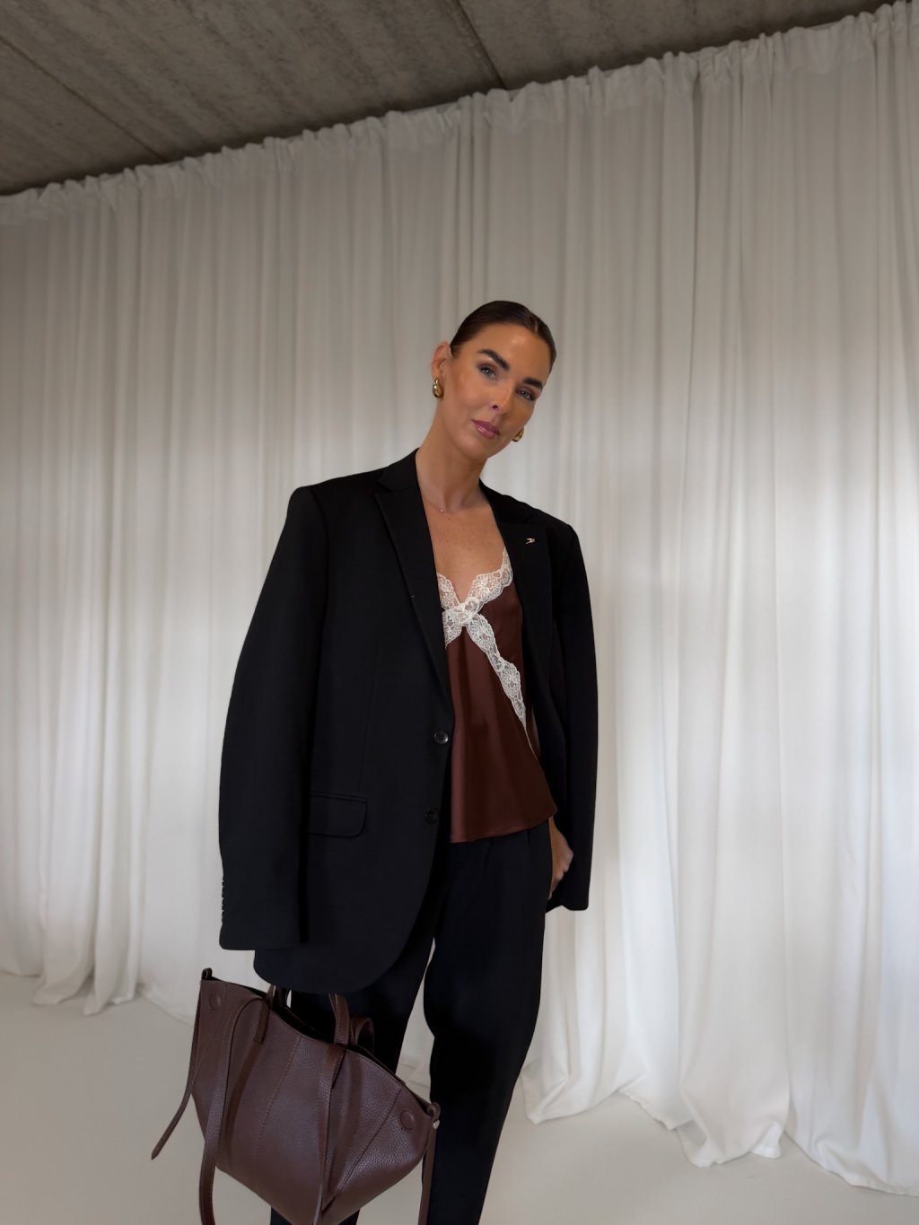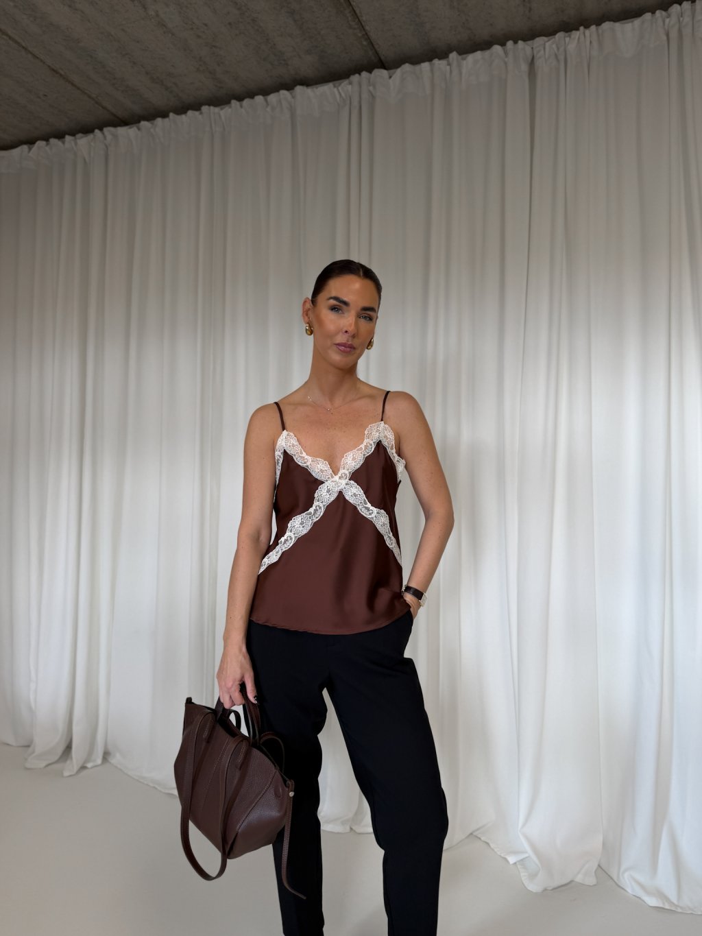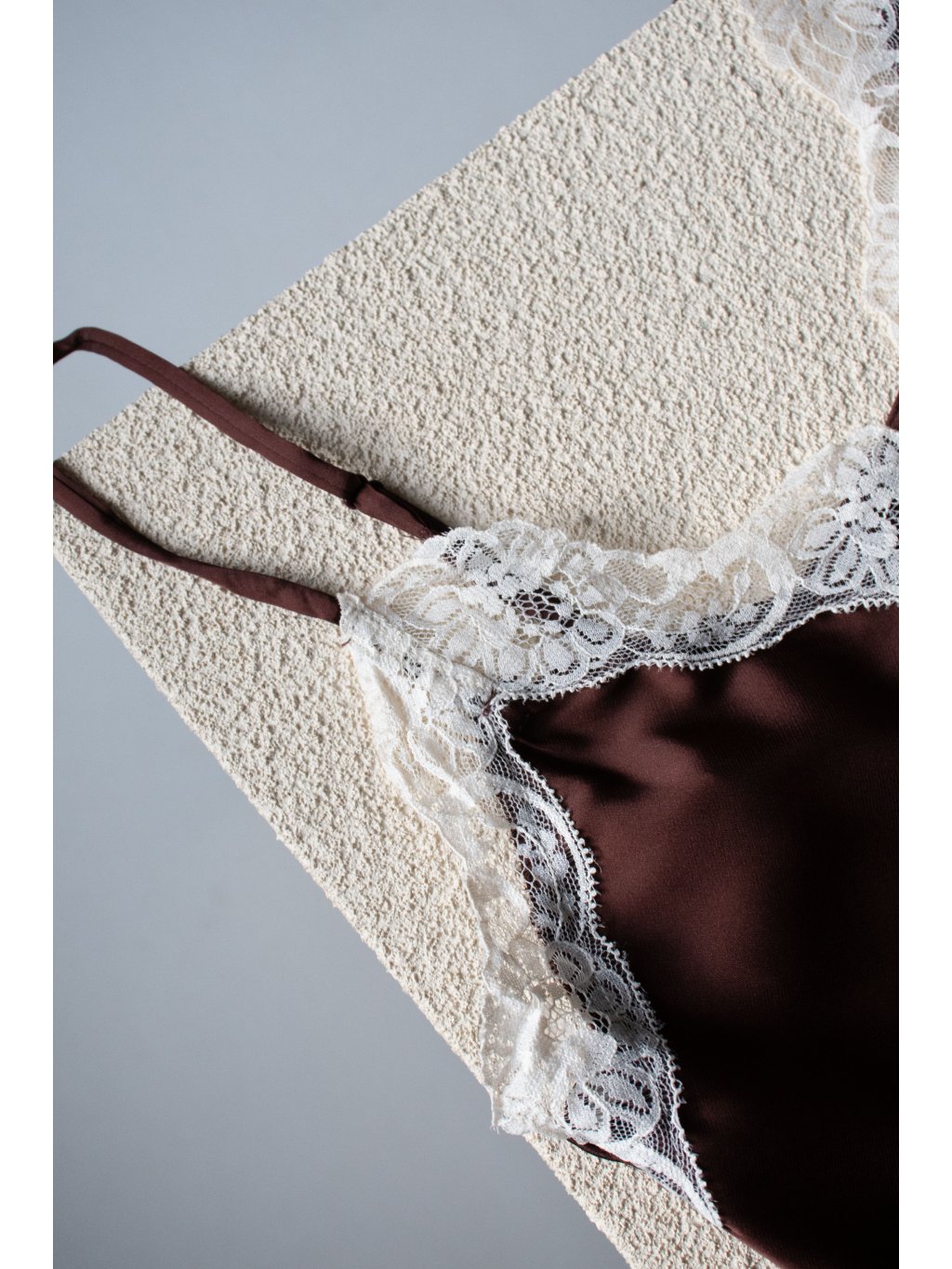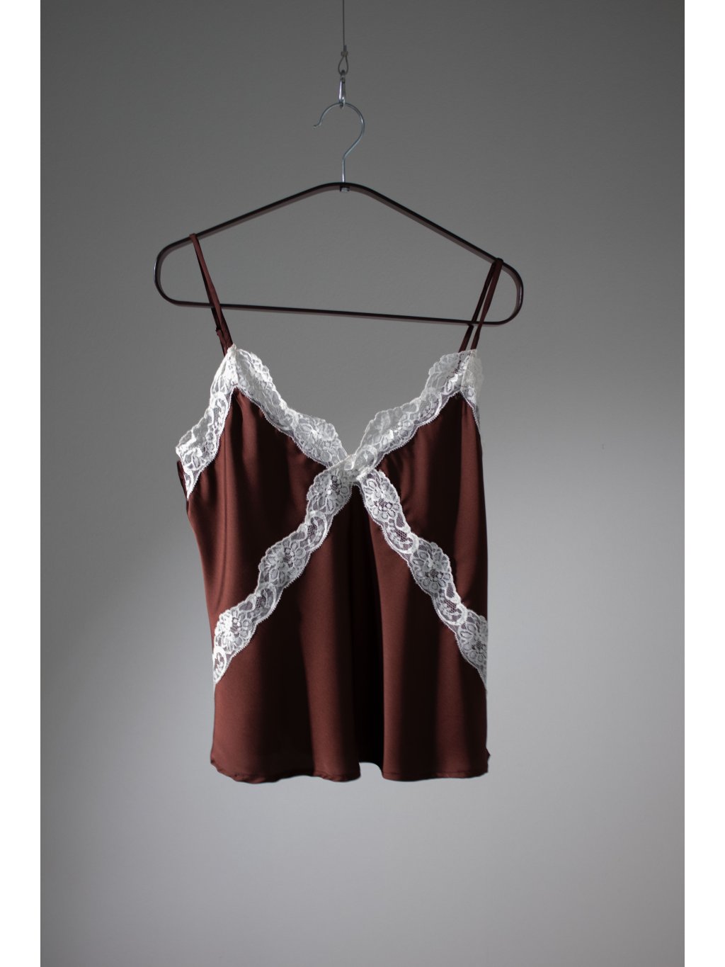 SATÉNOVÝ TOP S KRAJKOU brown