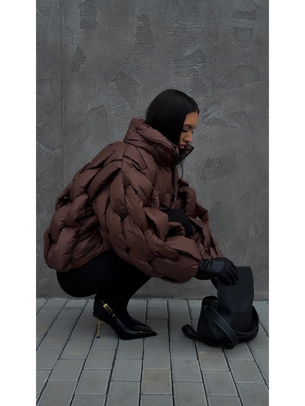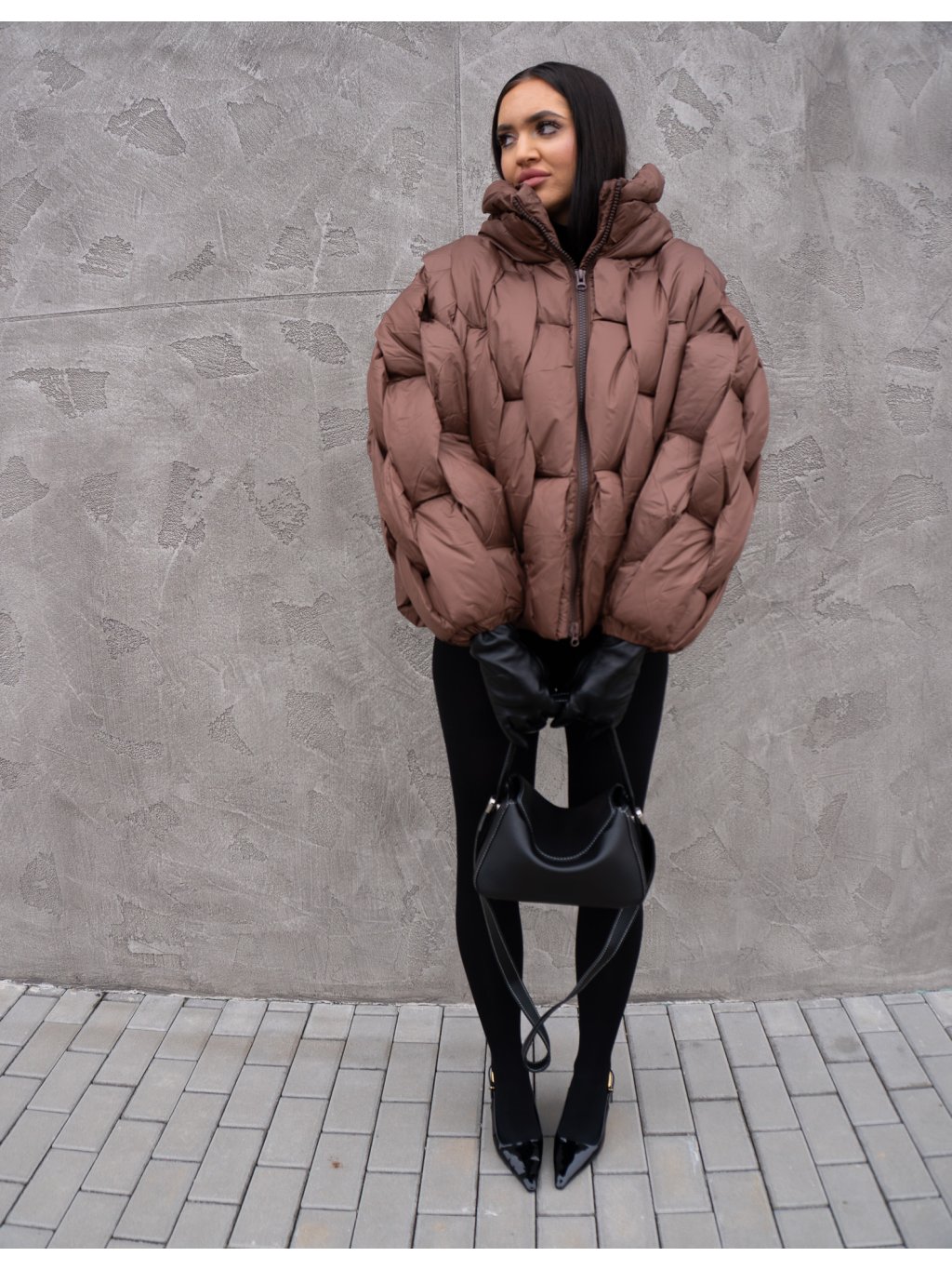 STRUKTUROVANÁ PUFF BUNDA brown
