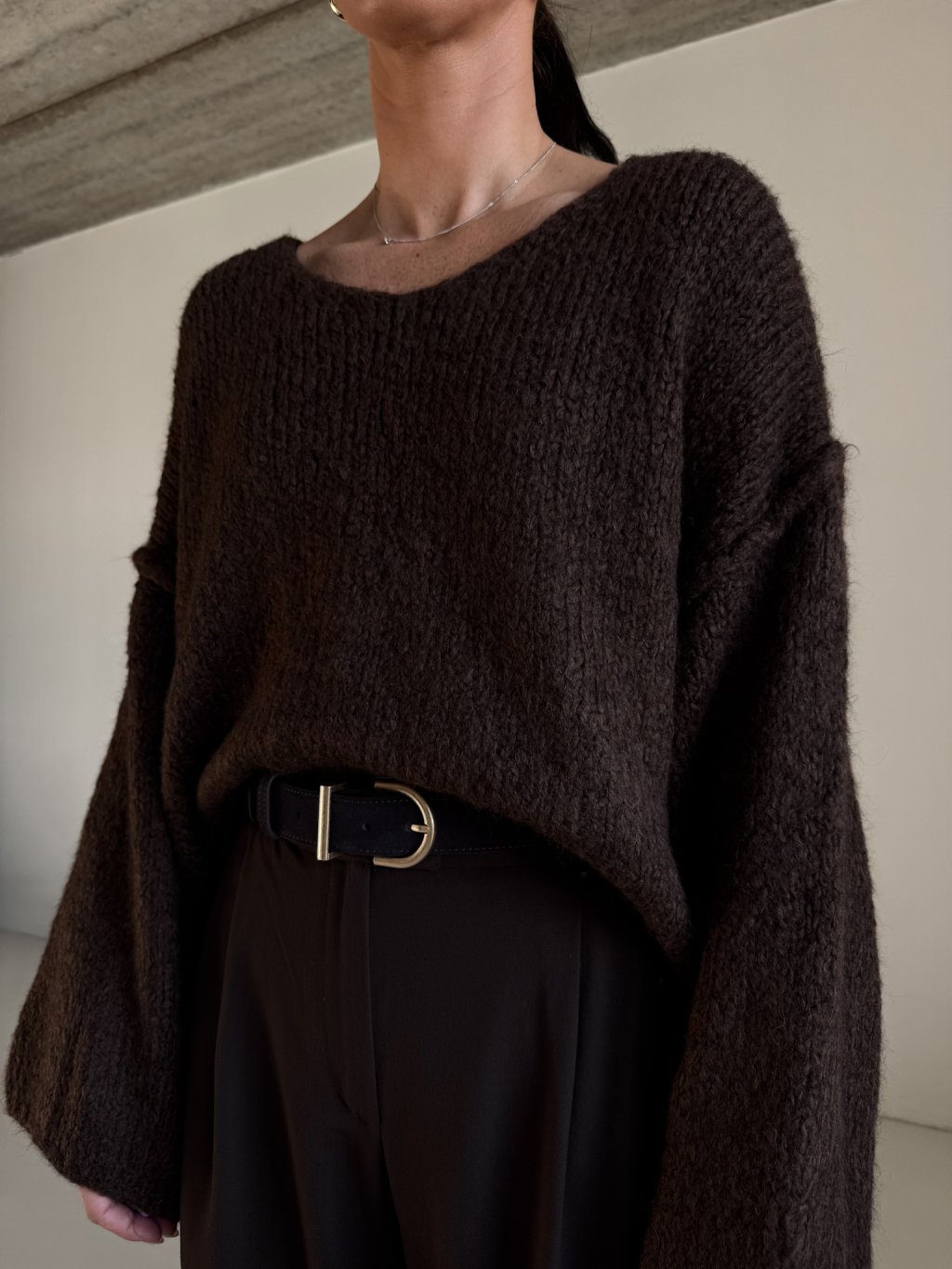 SVETR S PODÍLEM VLNY A ŠIROKÝM RUKÁVEM brown