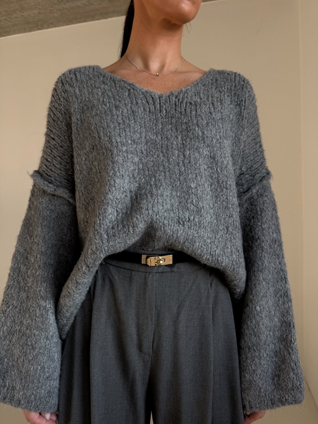 SVETR S PODÍLEM VLNY A ŠIROKÝM RUKÁVEM grey