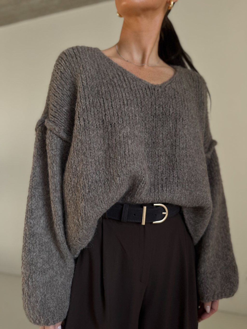SVETR S PODÍLEM VLNY A ŠIROKÝM RUKÁVEM taupe