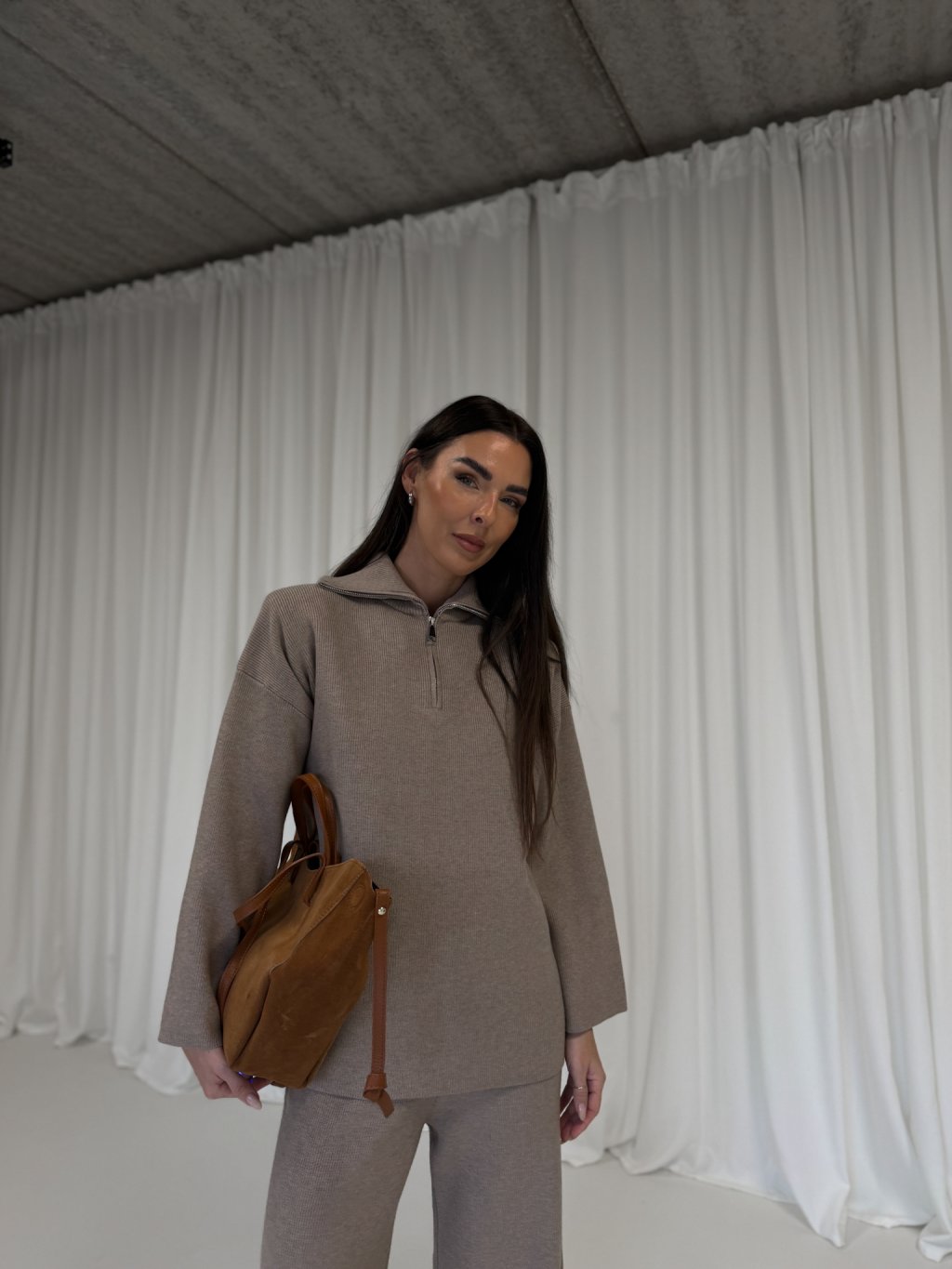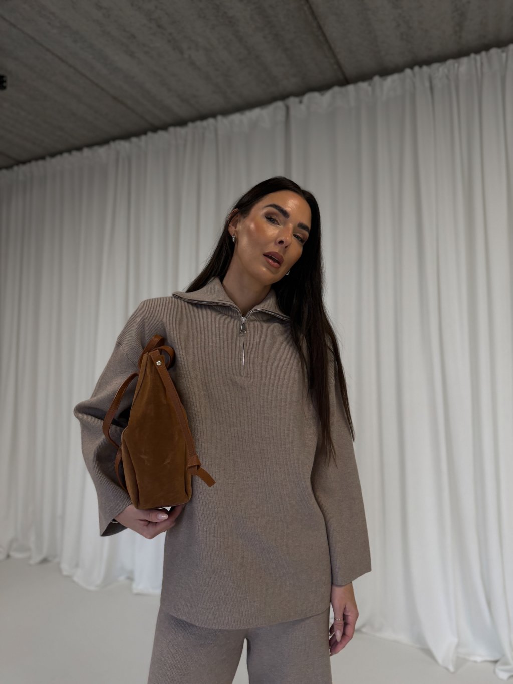 ŽEBROVANÝ PLETENINOVÝ KOMPLET taupe