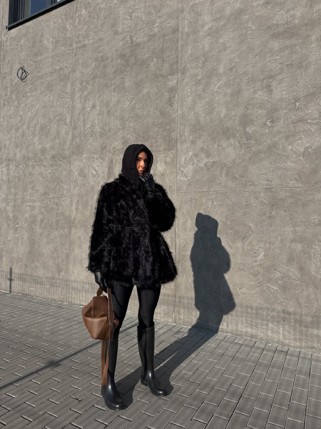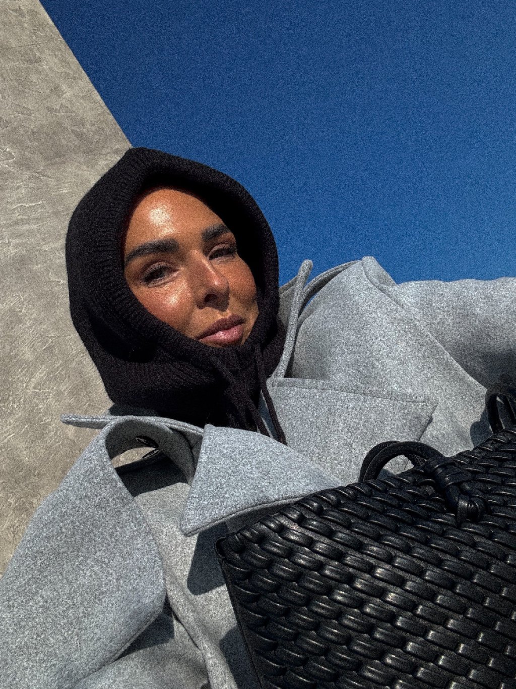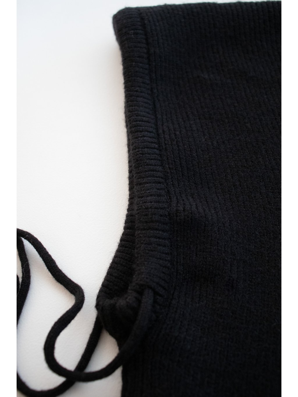 Pletená kukla, prodloužený krk, zavazování na šňůrky, příjemný materiál.