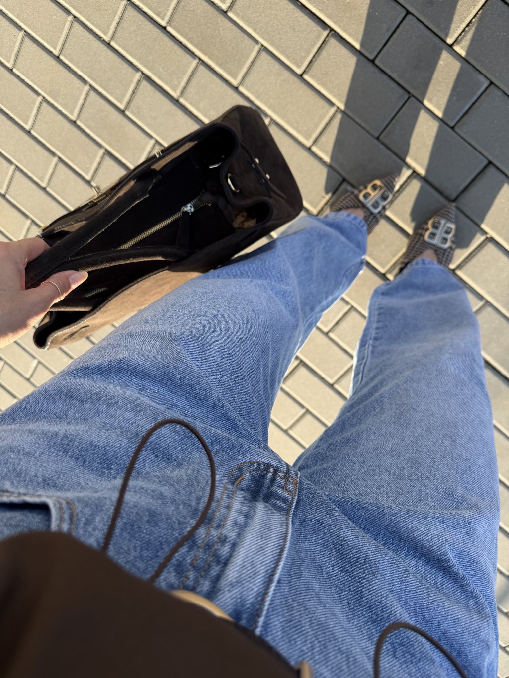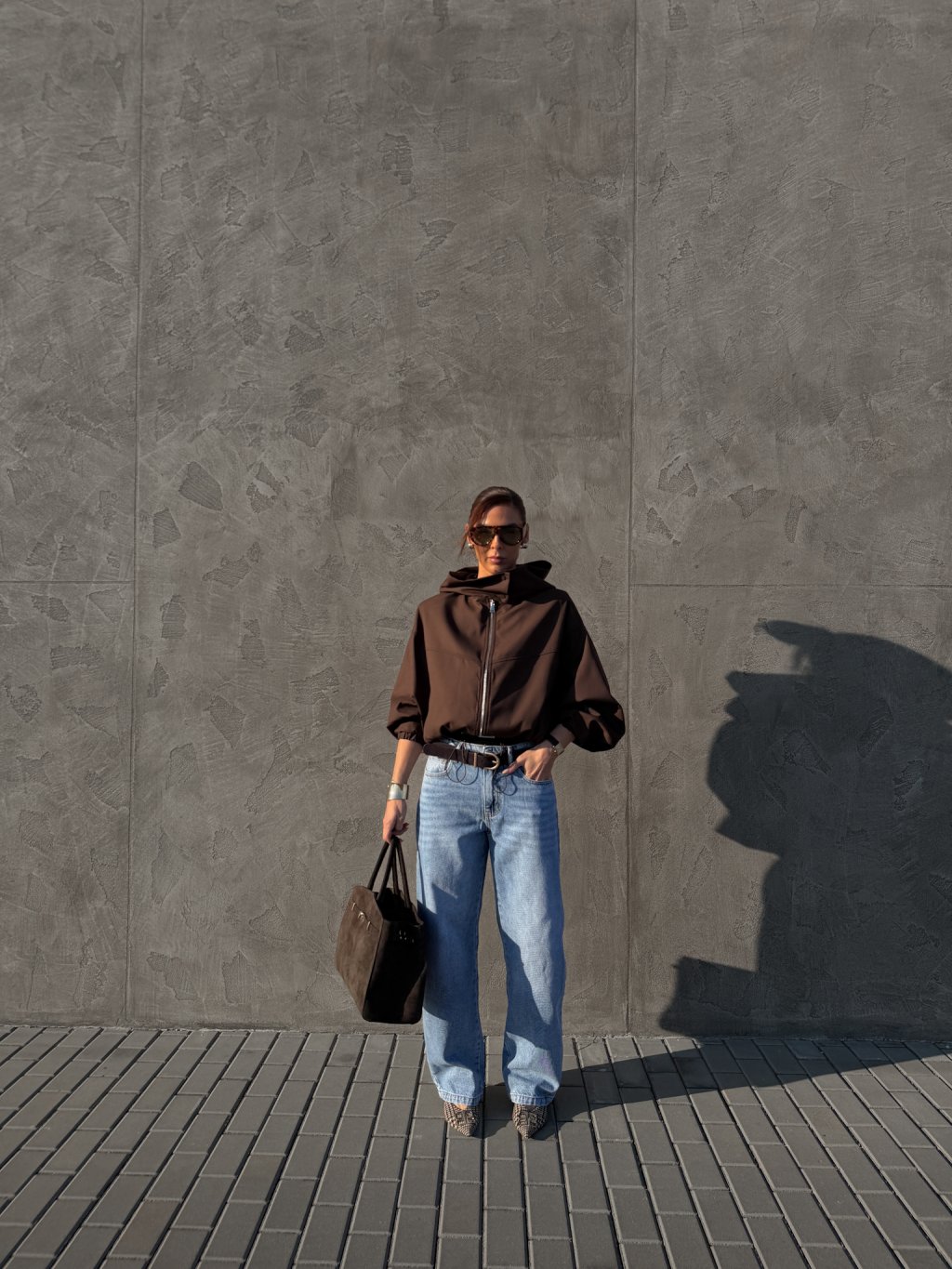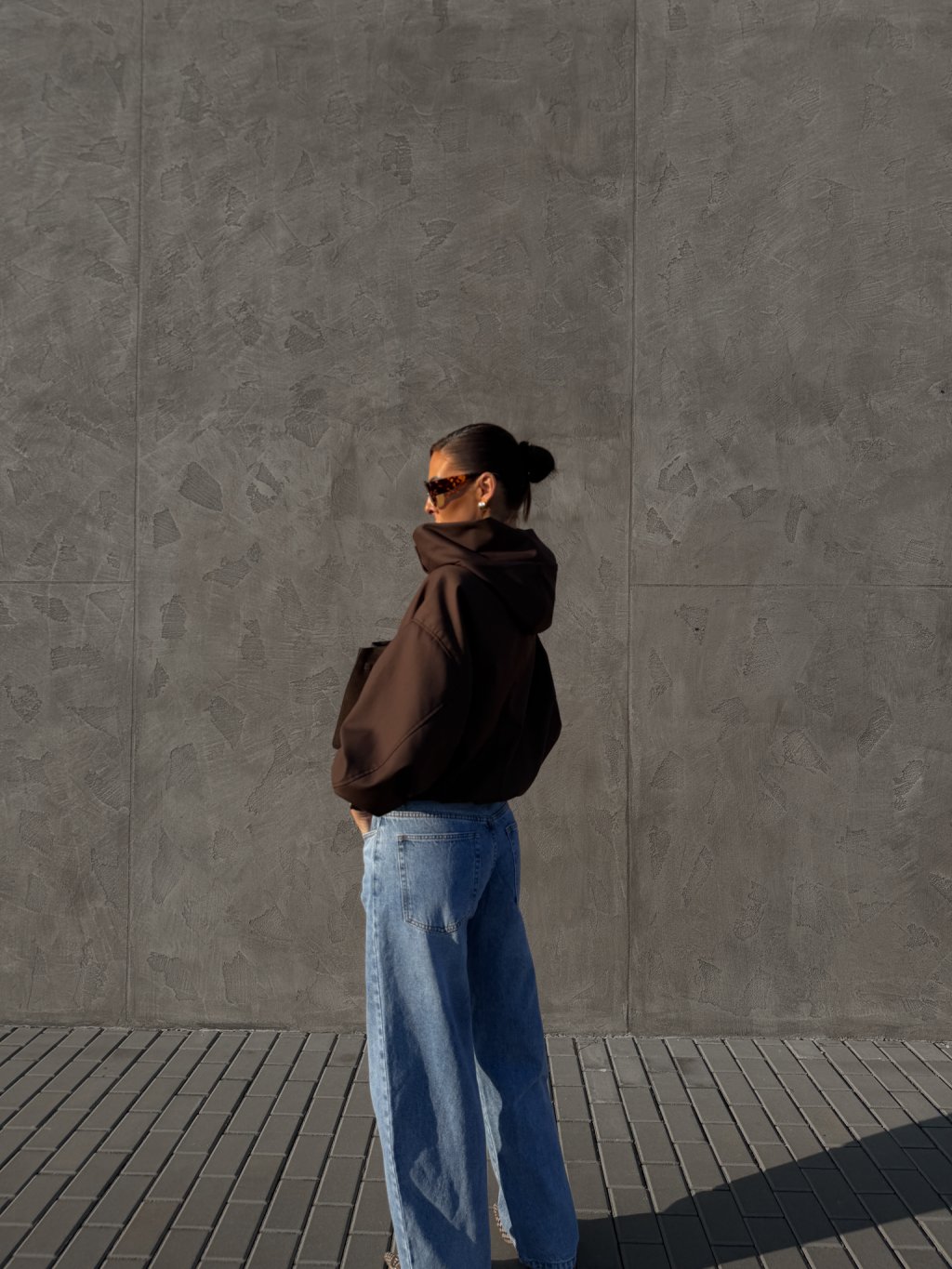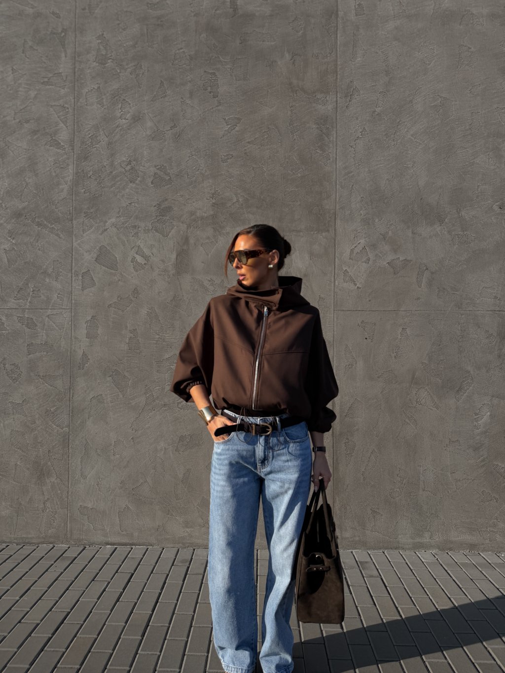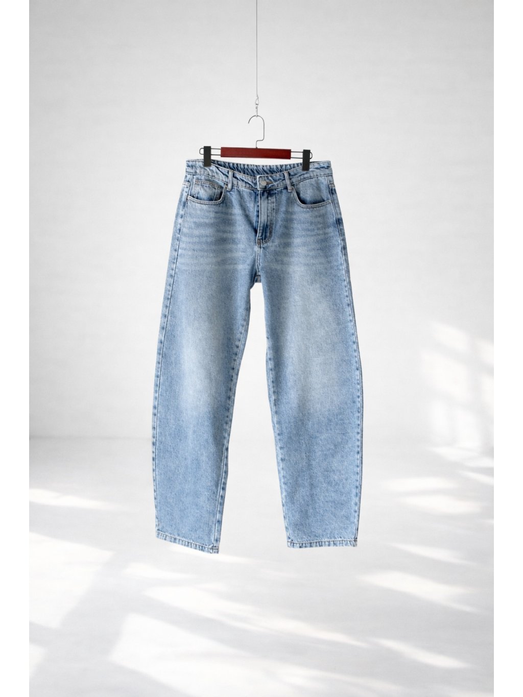 Džíny širokého balonového střihu, přední i zadní kapsy, zapínání na zip a denim knoflík, středně vysoký pas, šisování, poutka na pásek.