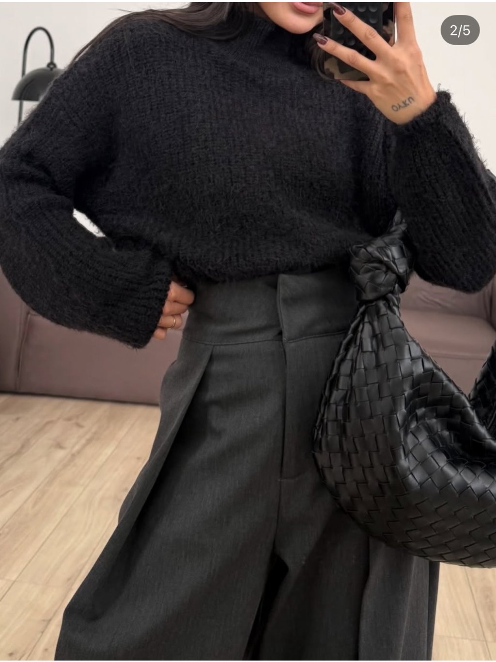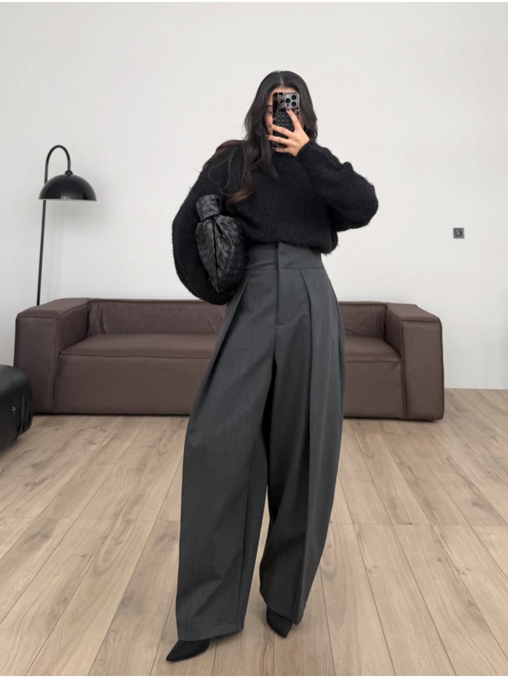 Kalhoty balonového střihu, vpředu výrazné sklady, boční kapsy, vysoký zúžený pas. Materiál je pevnější, krásně drží tvar.