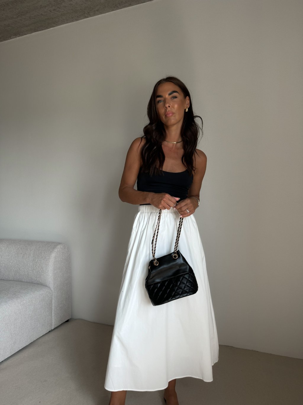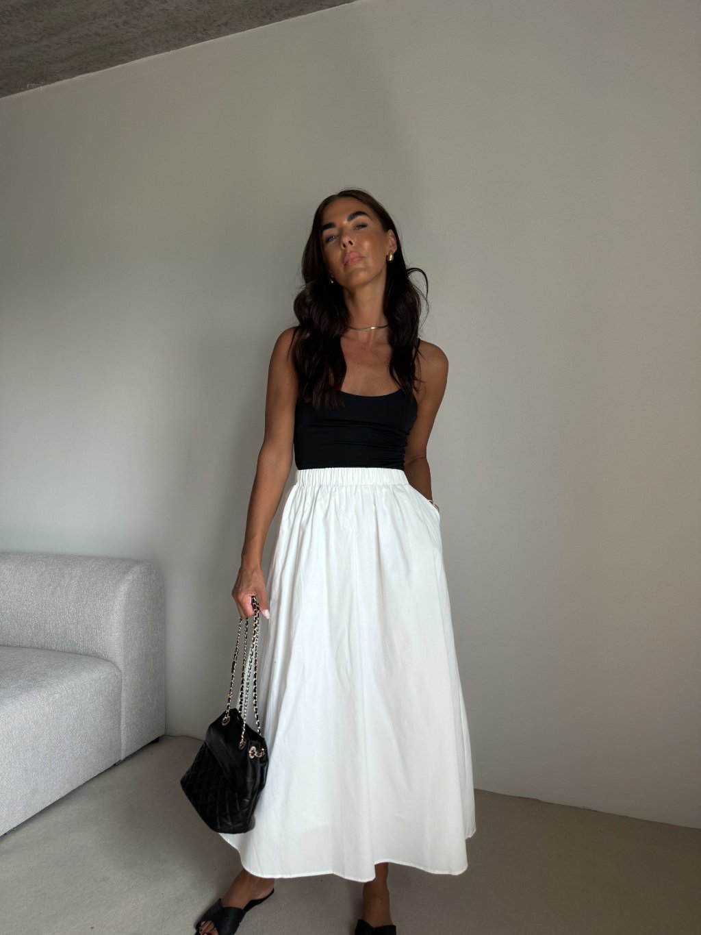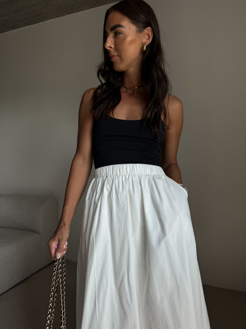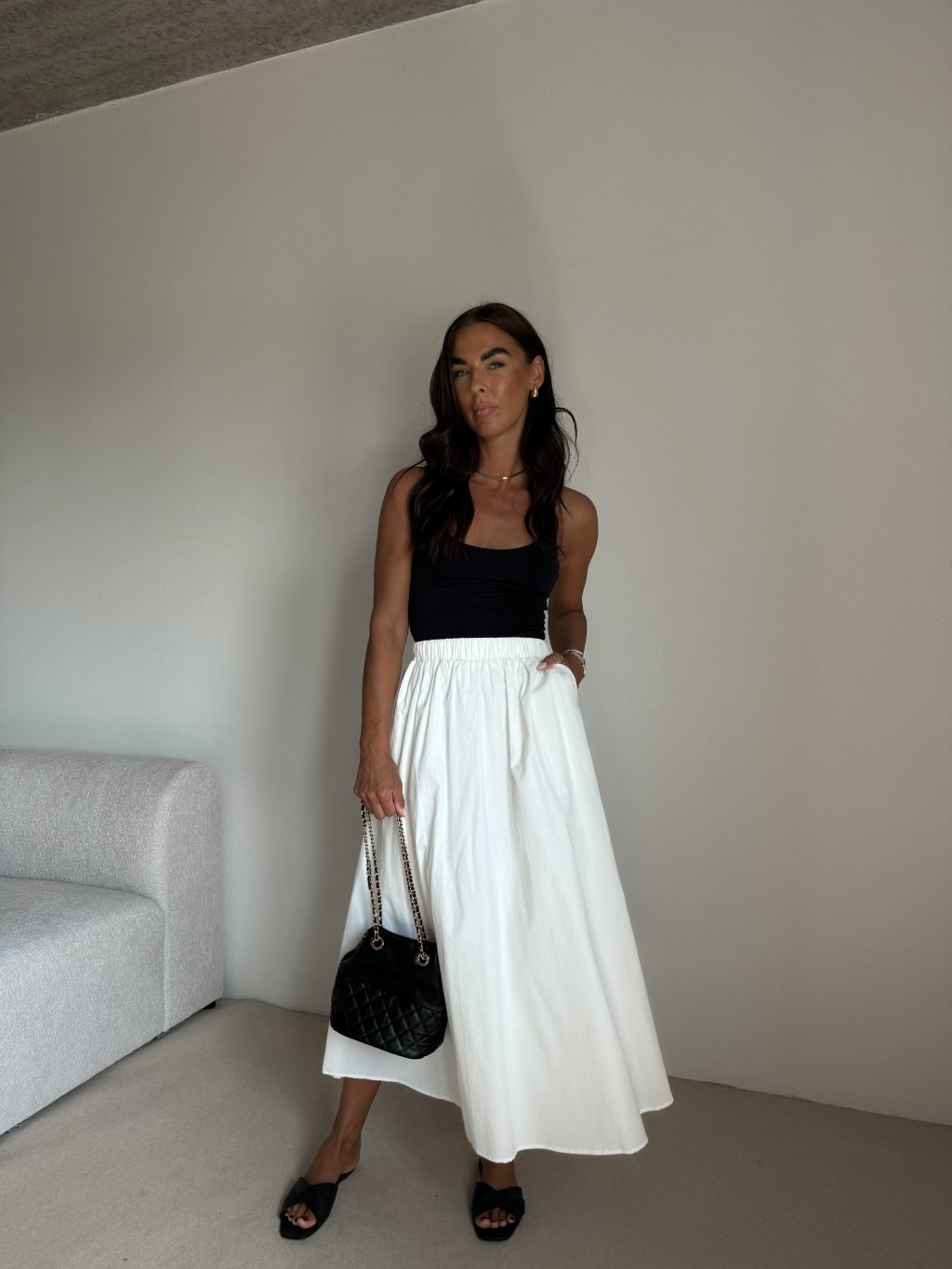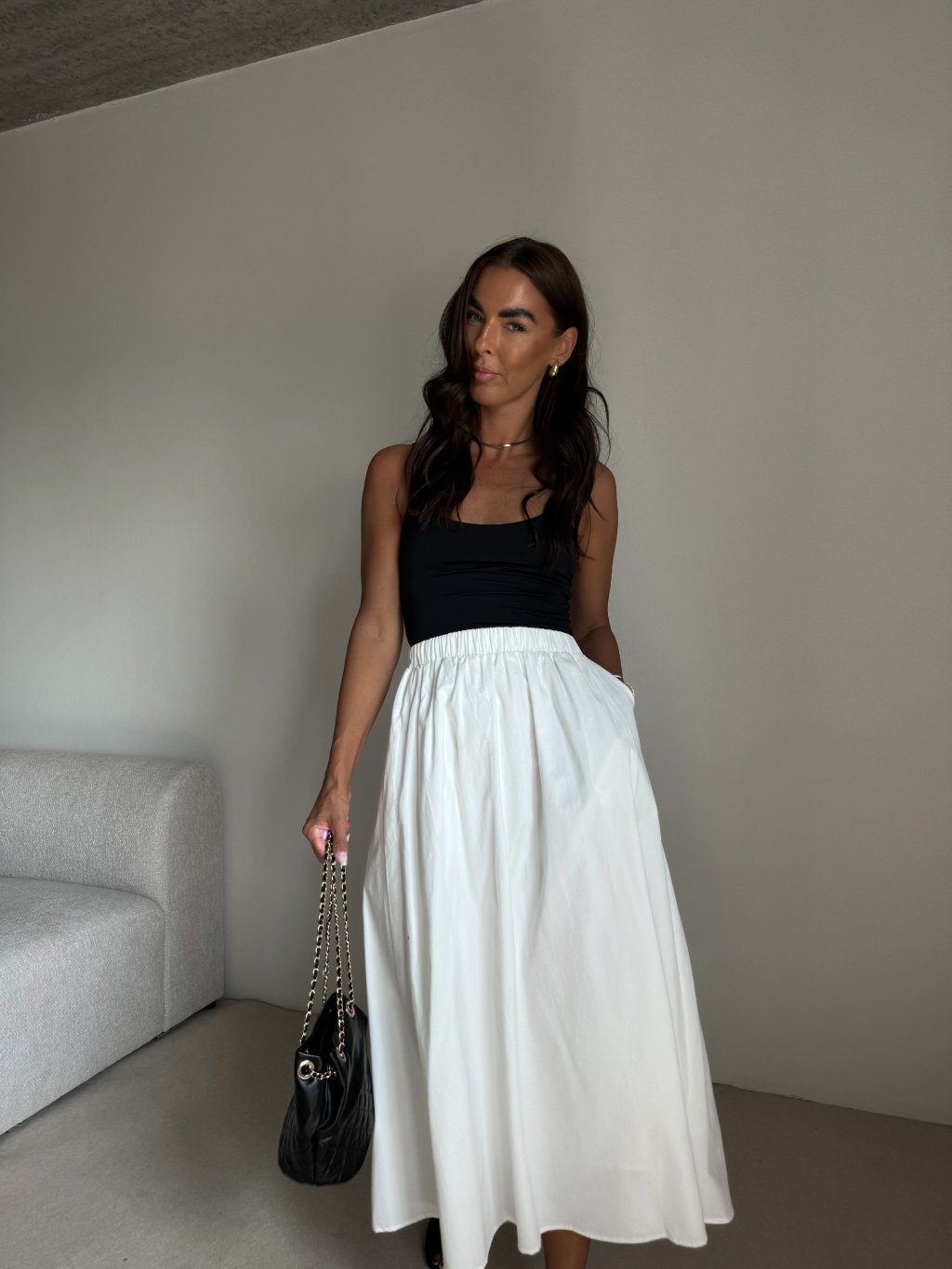 BAVLNĚNÁ KOLOVÁ MIDI SUKNĚ white