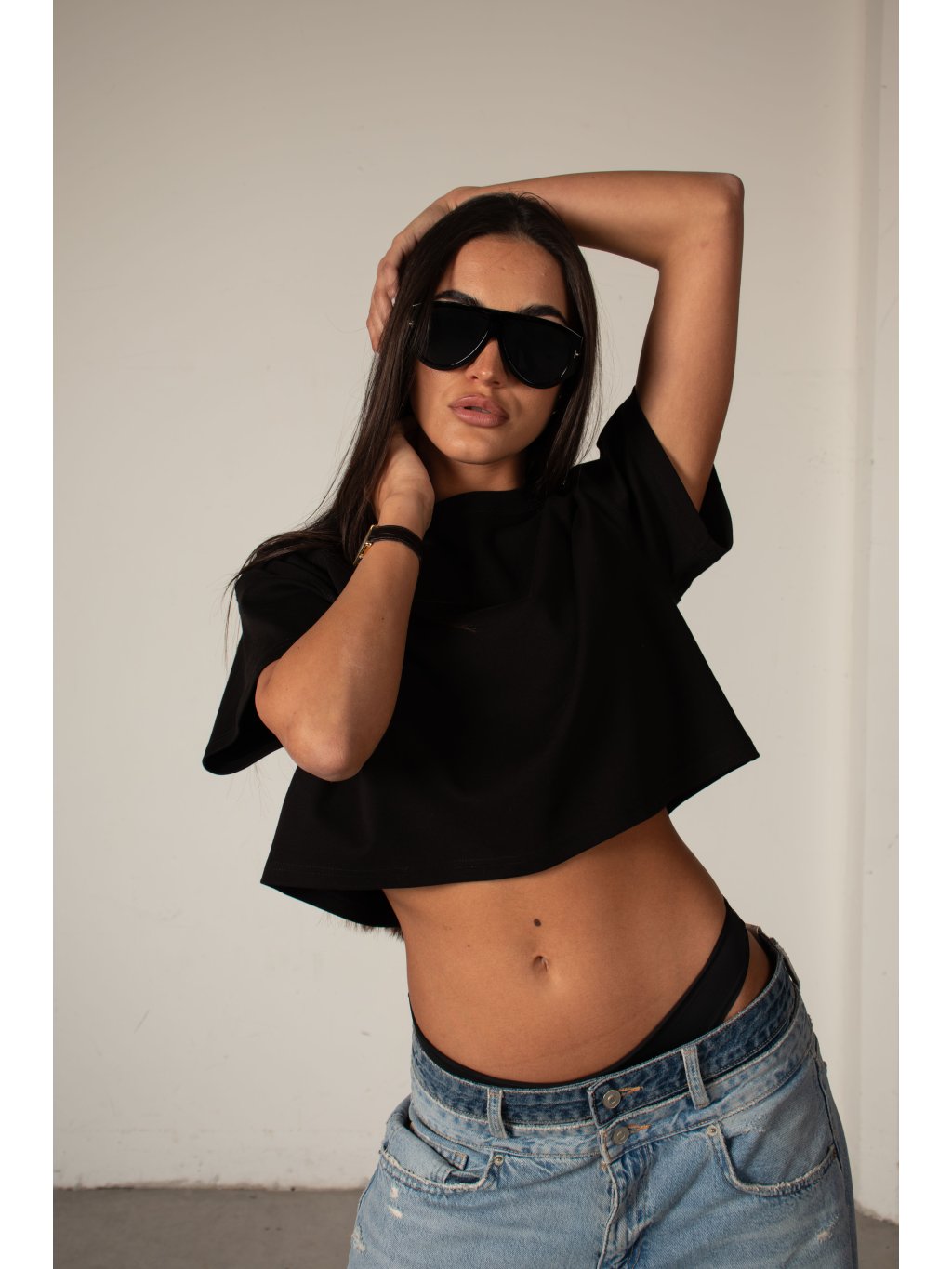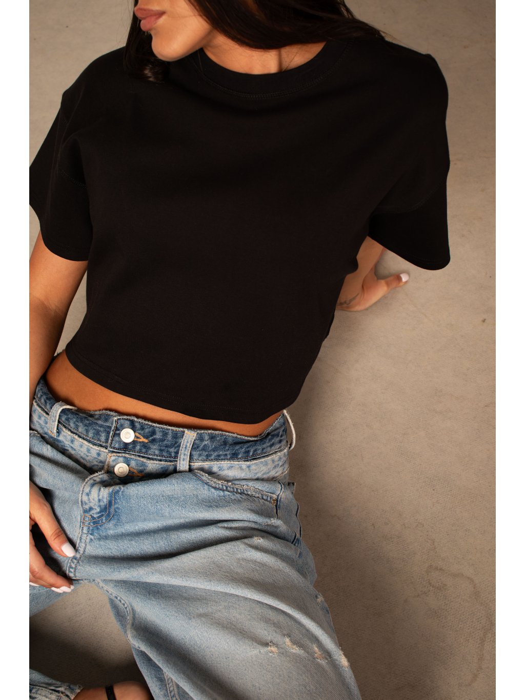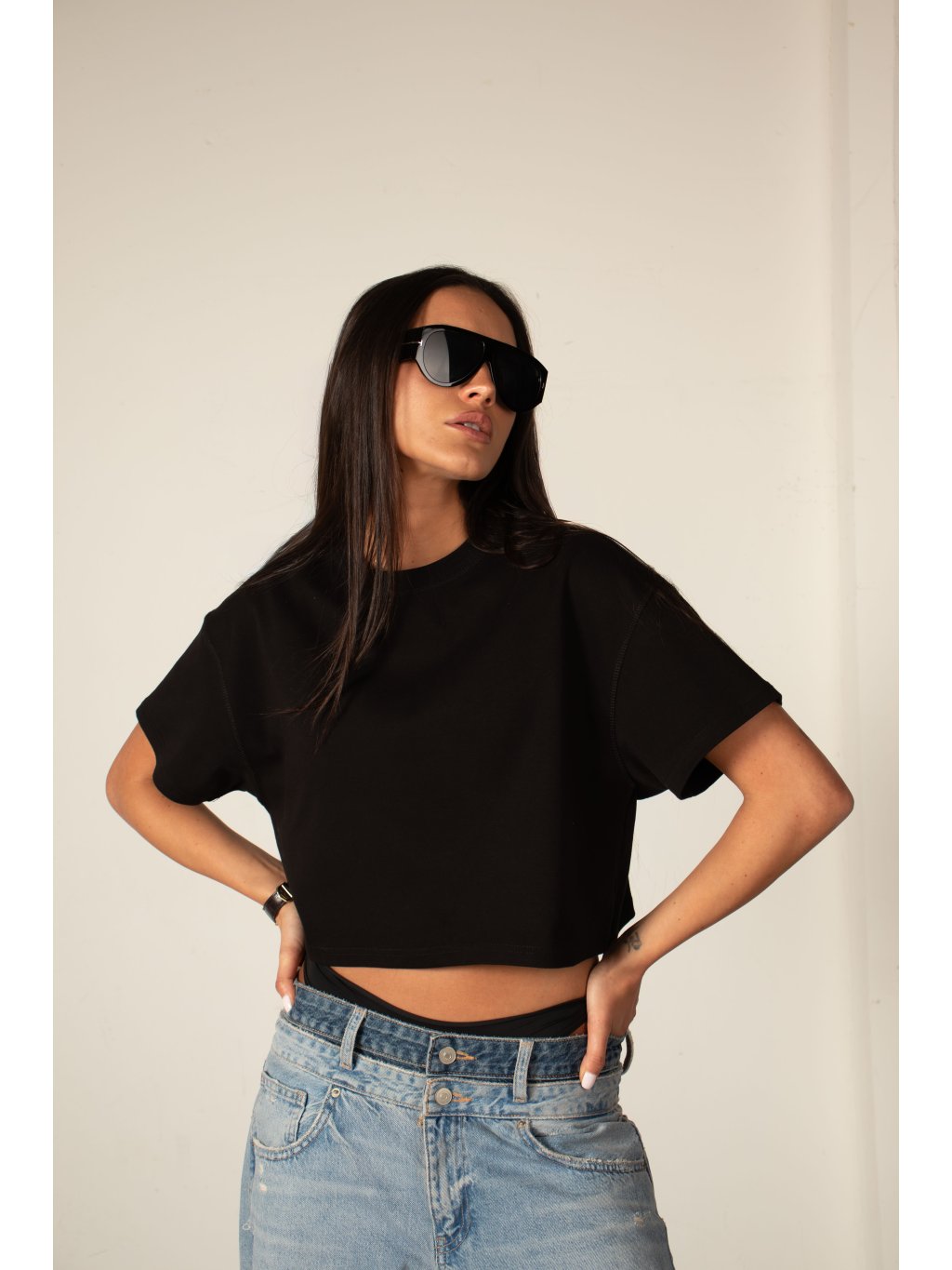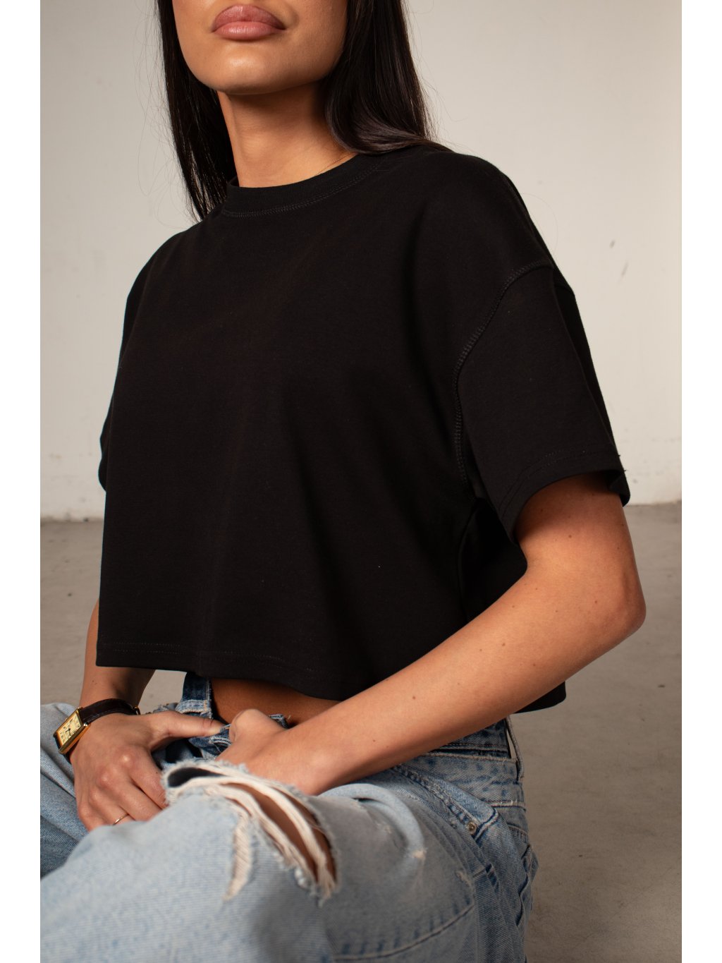 BAVLNĚNÉ TRIČKO heavy cotton - cropped black
