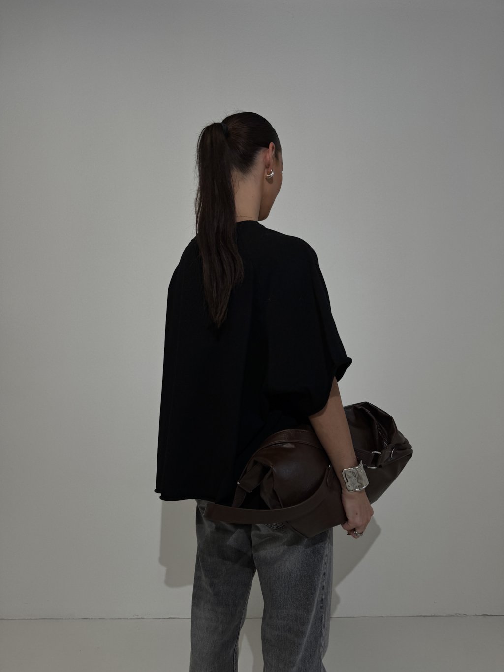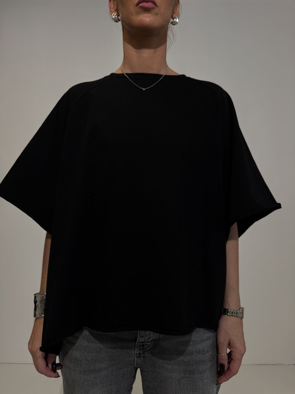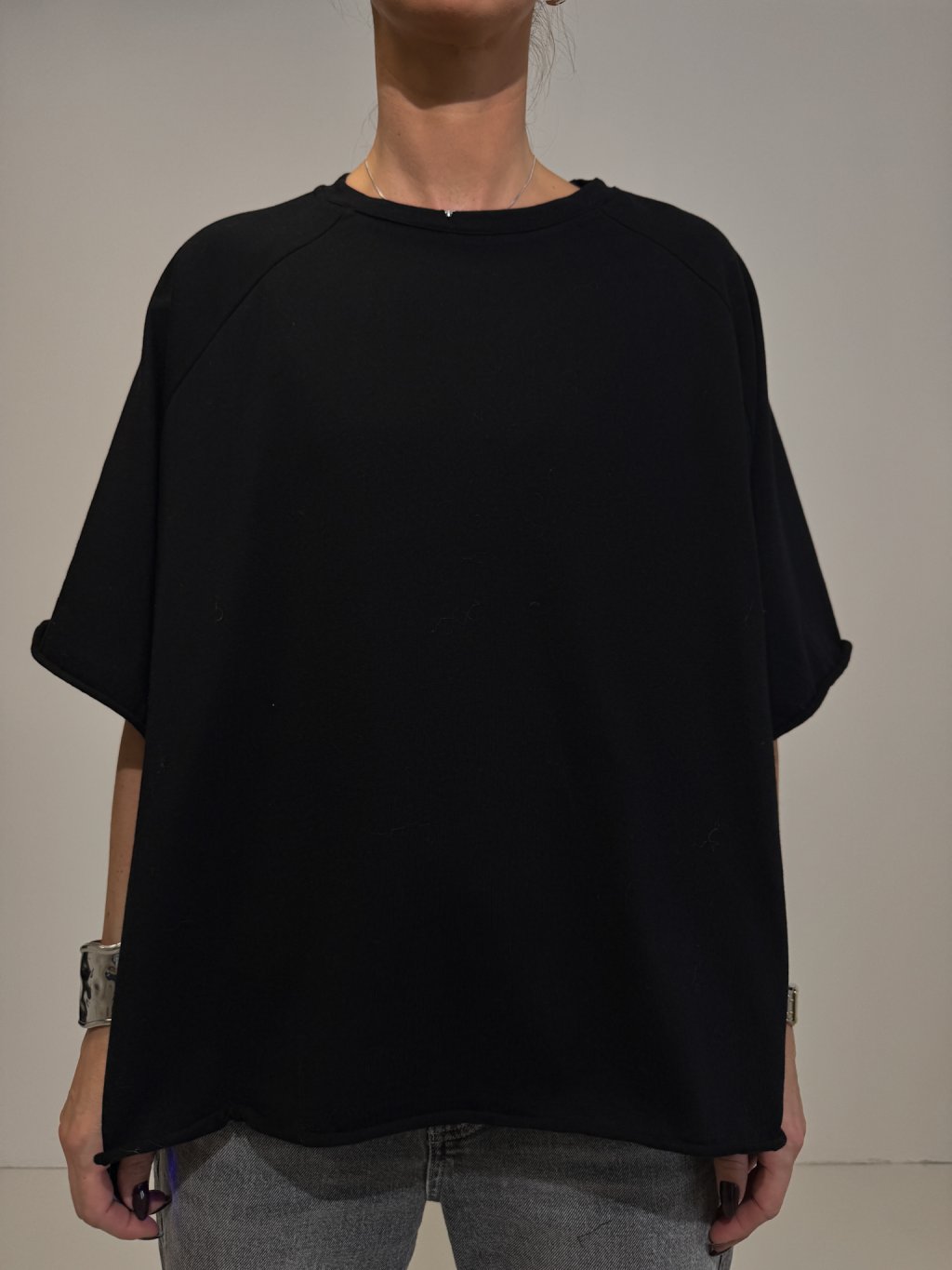 Boxy triko volného oversized střihu, nezačištěné okraje rukávů a spodní okraj. Vysokogramážní bavlna.