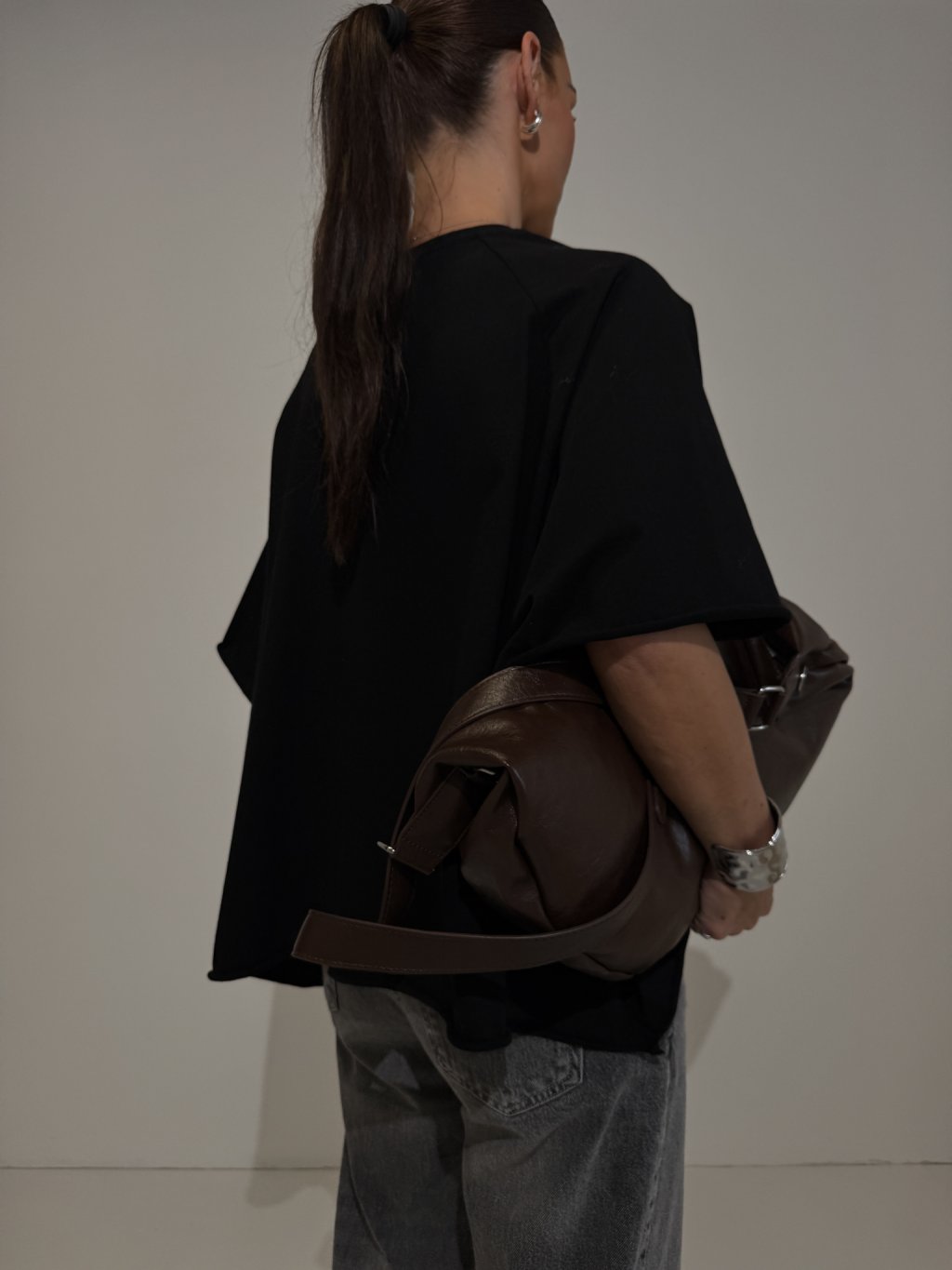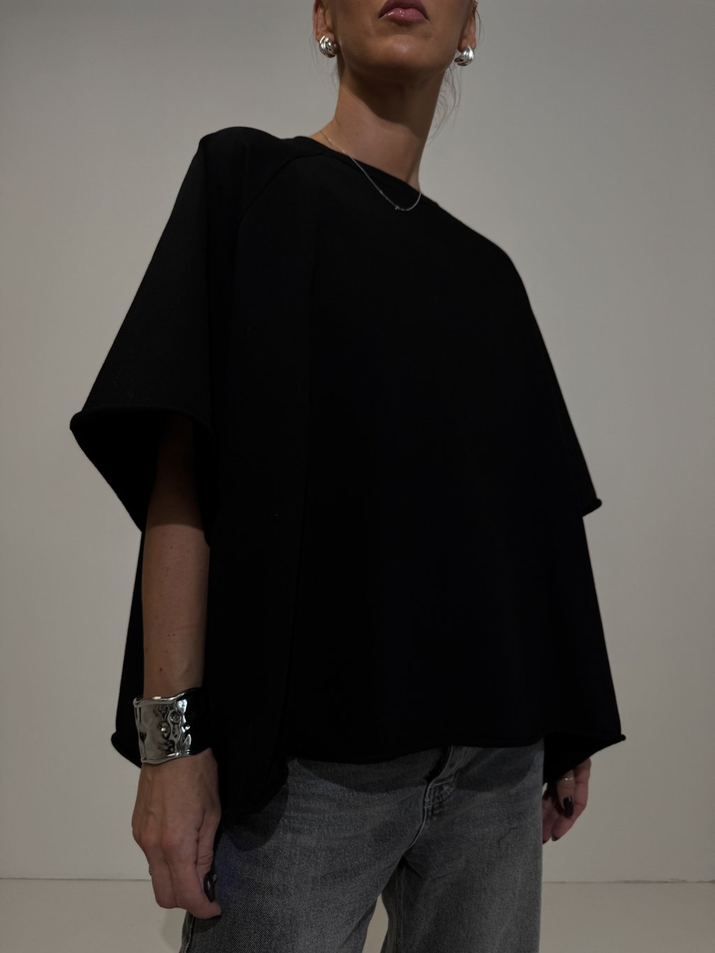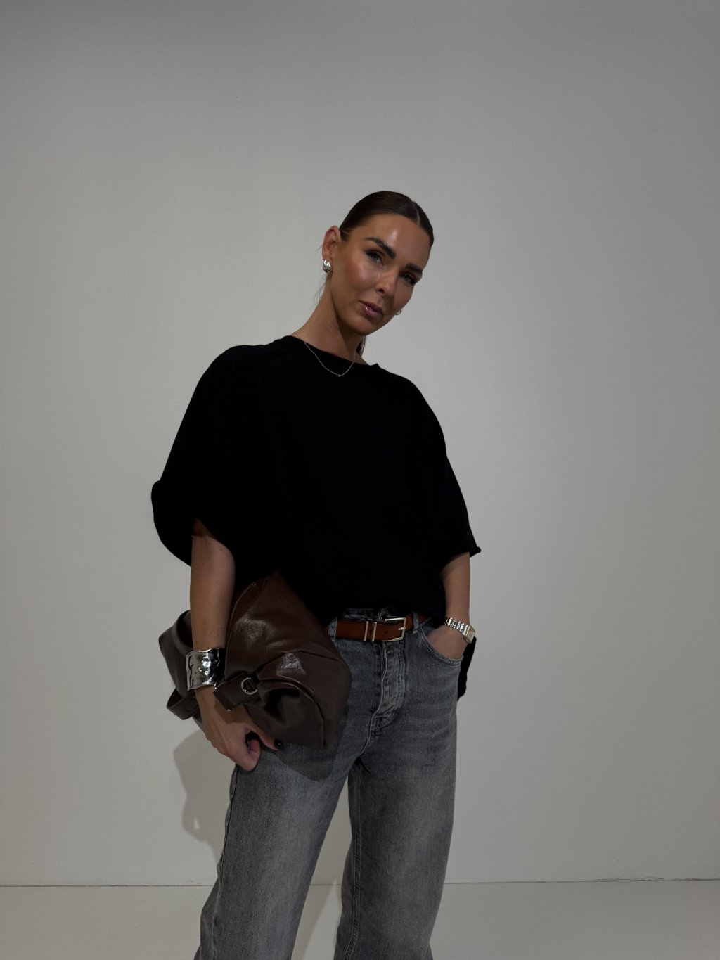 Boxy triko volného oversized střihu, nezačištěné okraje rukávů a spodní okraj. Vysokogramážní bavlna.