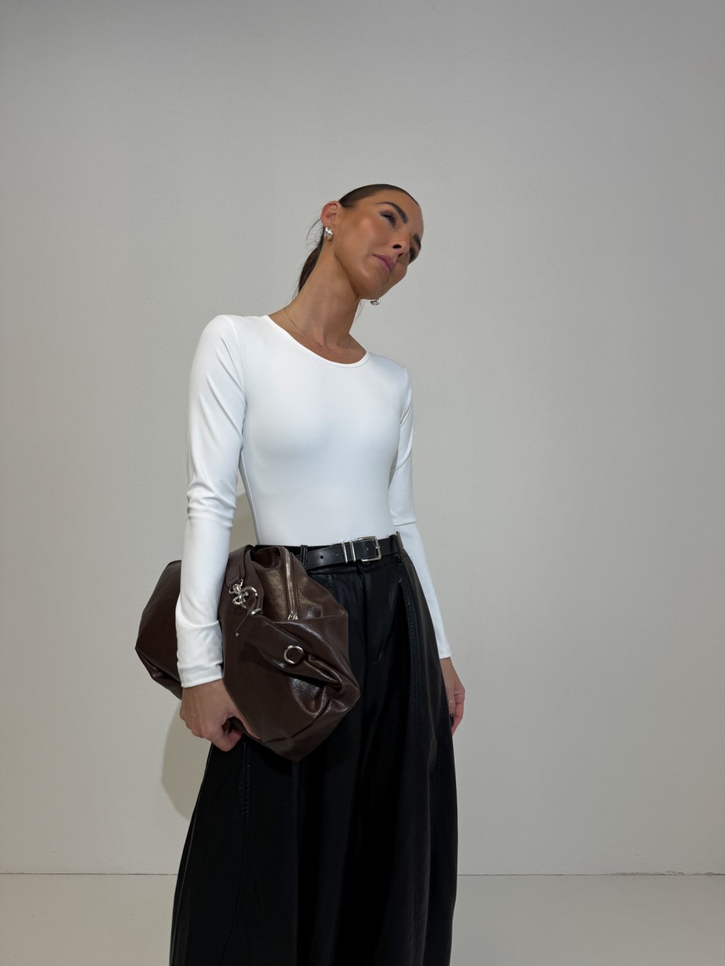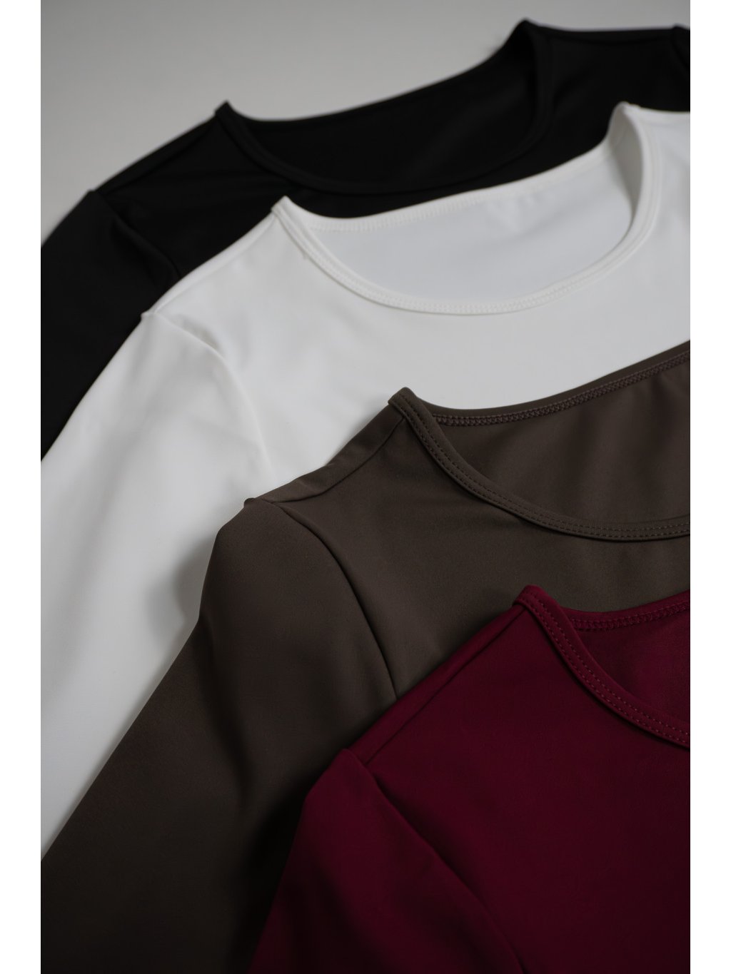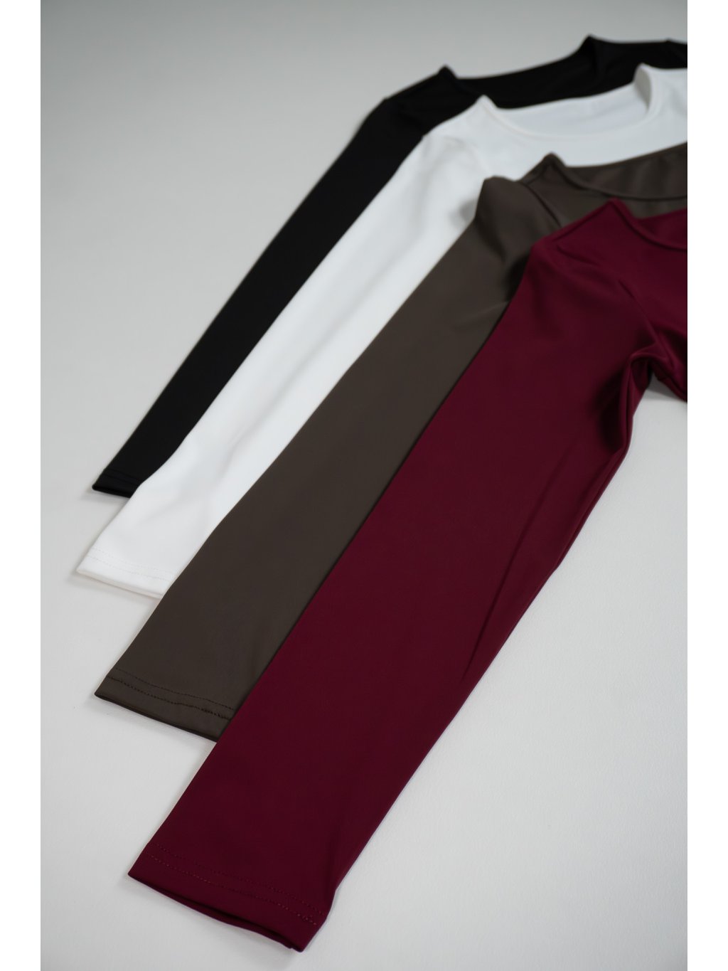 Hladké body ze stretchového materiálu, dlouhý rukáv, kulatý výstřih, zapínání na dva cvočky. Materiál je pružný, příjemný. Volte svou běžnou konfekční velikost.