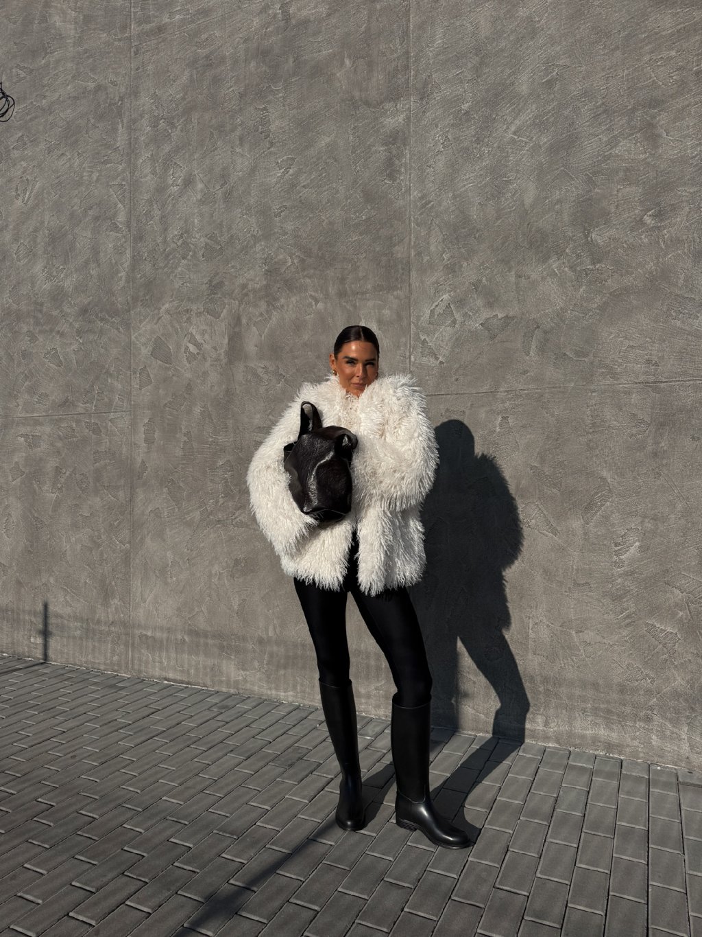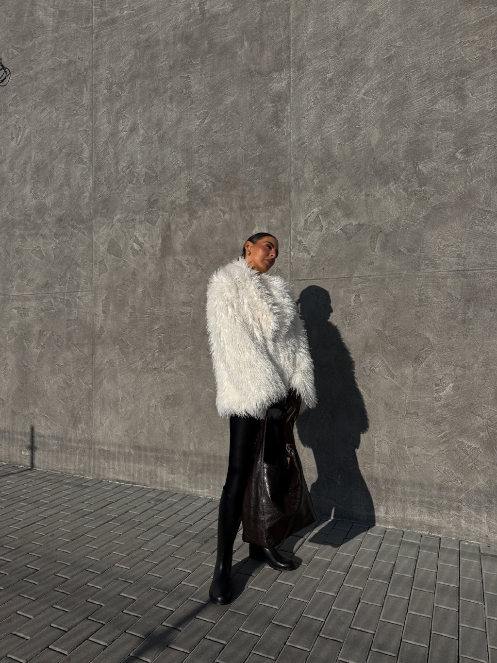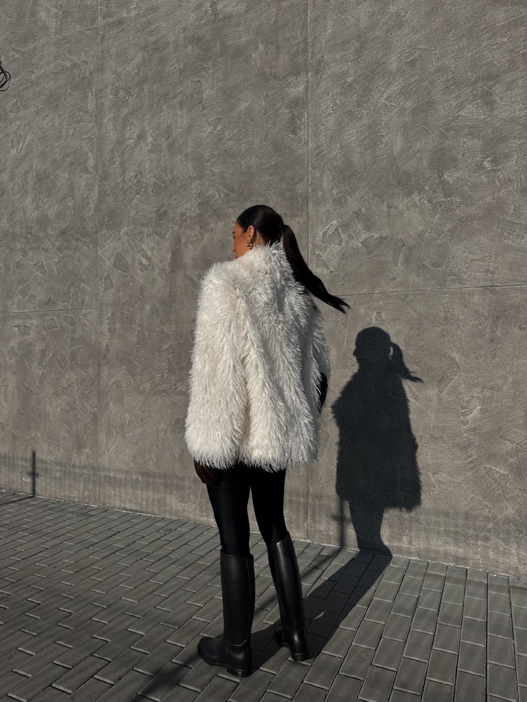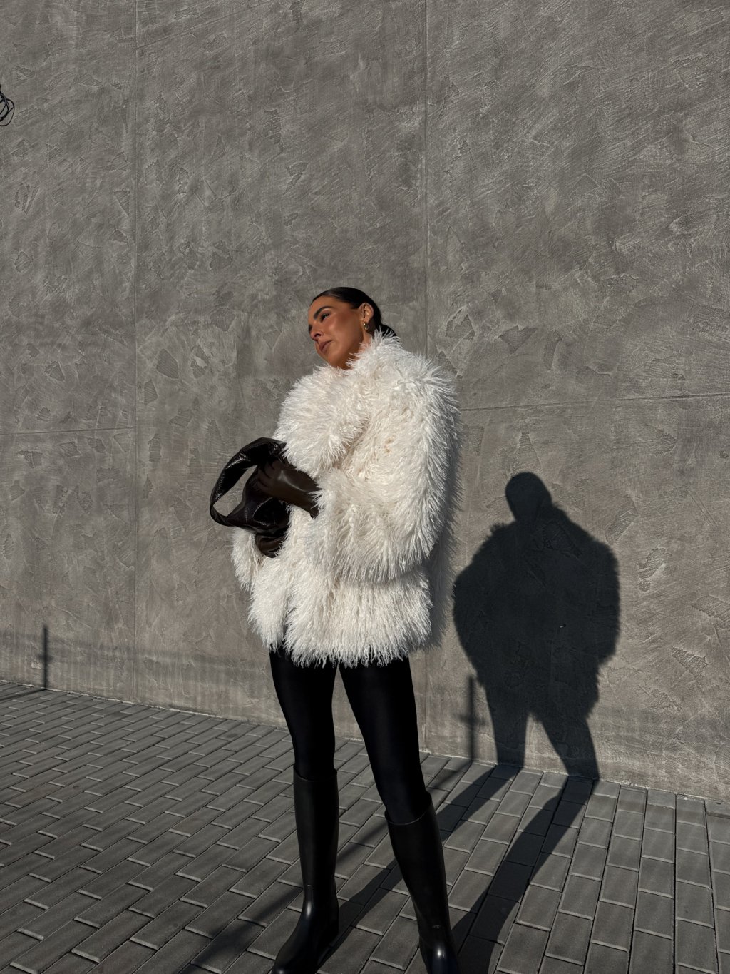 HUŇATÝ PRODLOUŽENÝ KOŽÍŠEK off white