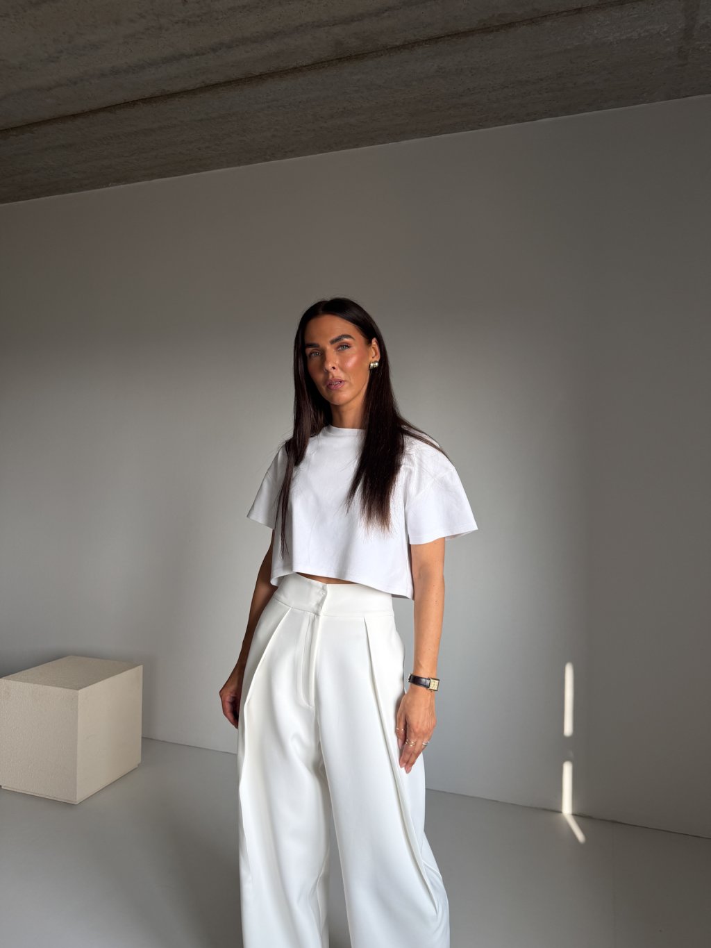 Kalhoty balonového střihu, vpředu výrazné sklady, boční kapsy, vysoký zúžený pas. Materiál krásně drží tvar.