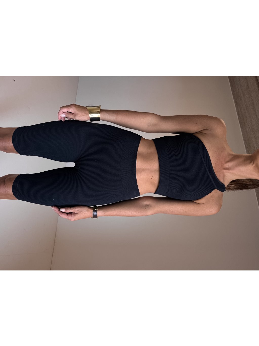 Žebrovaný komplet - biker šortky - vysoký pas, crop top najedno rameno.
