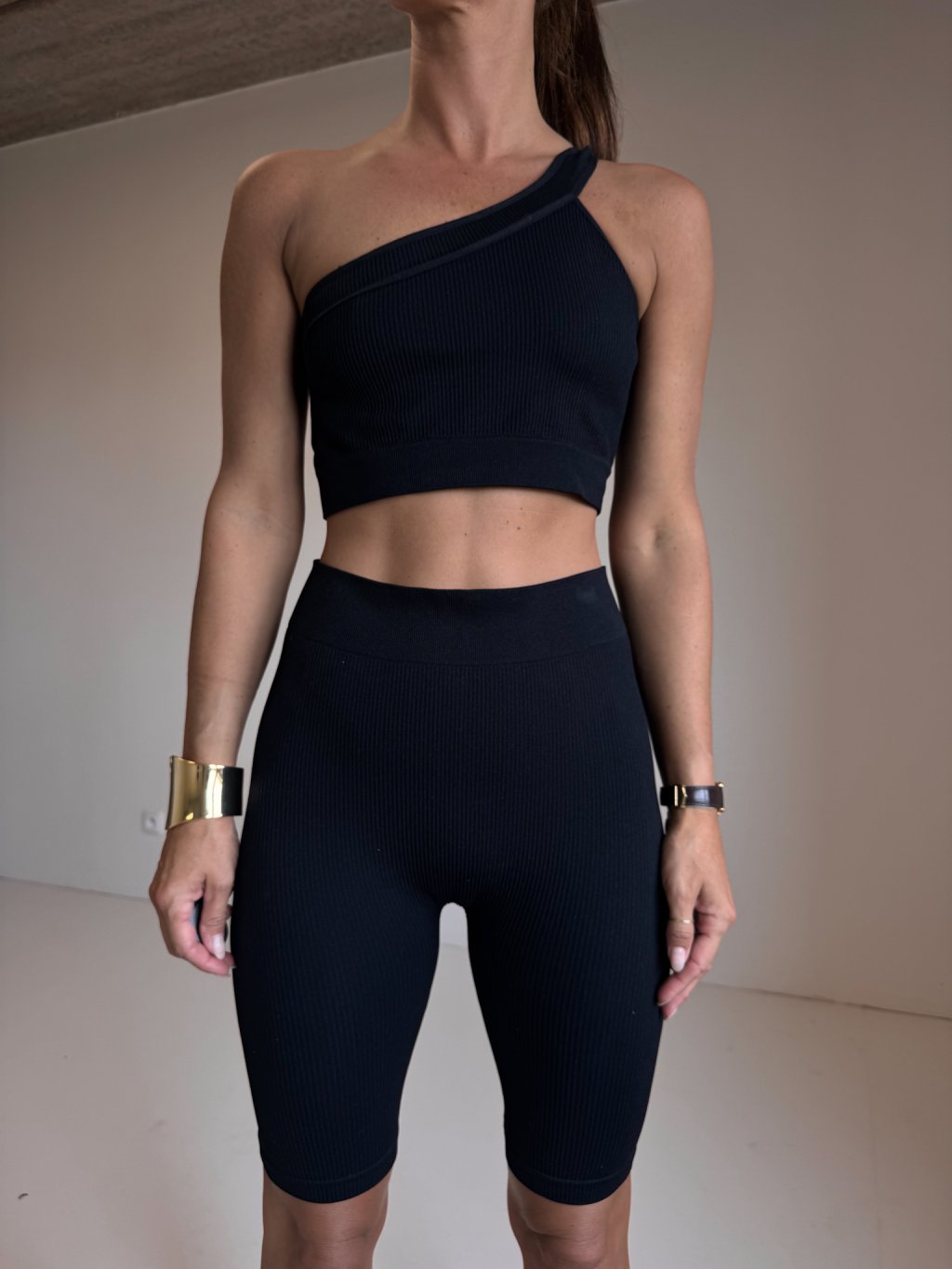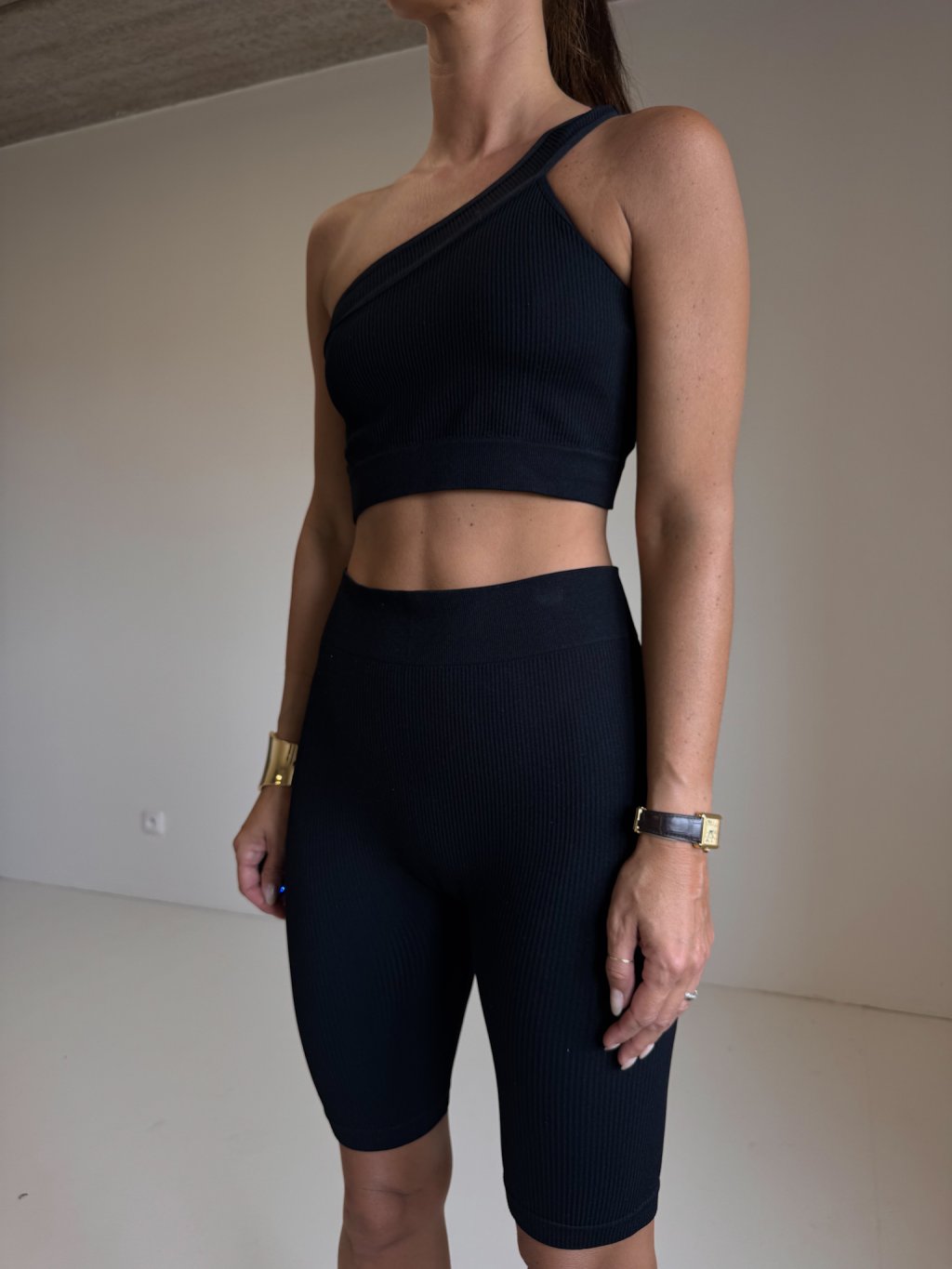 KOMPLET ŠORTKY+ TOP NA JEDNO RAMENO black