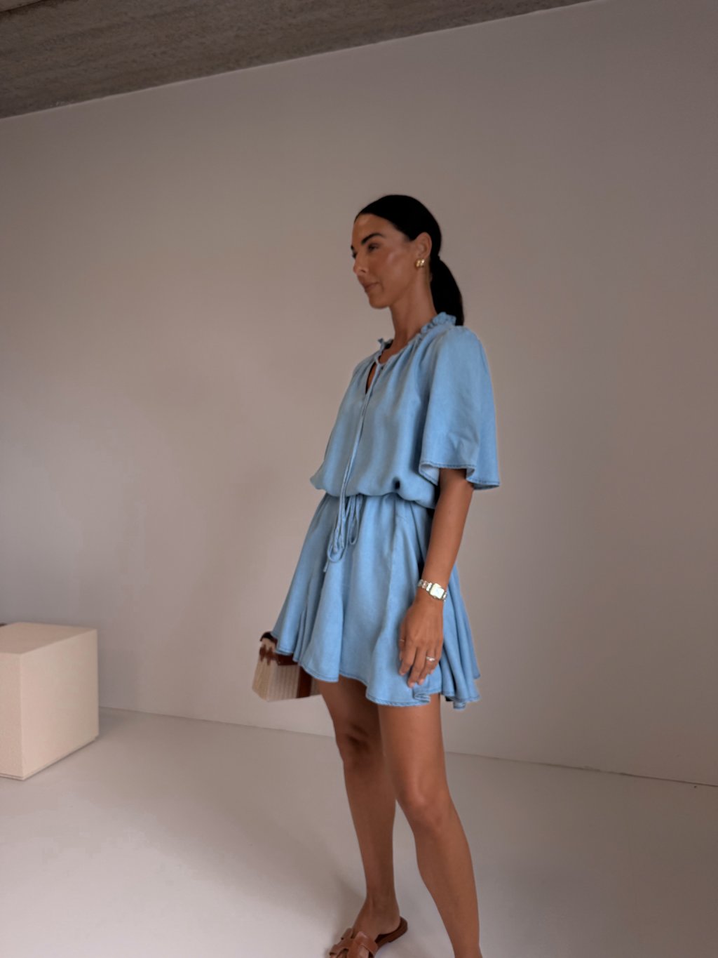 KOŠILOVÉ ŠATY S KOLOVOU SUKNÍ denim