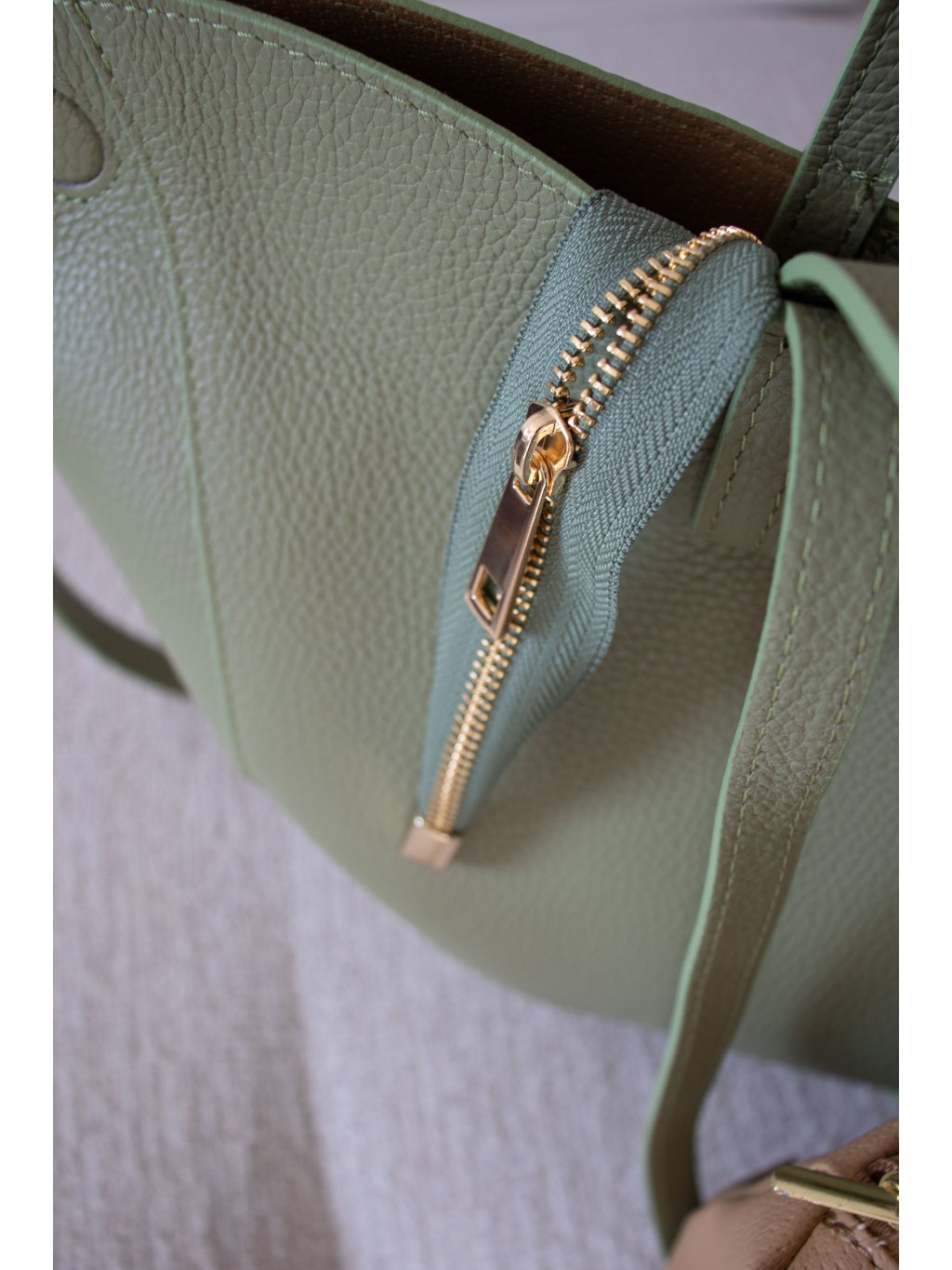KOŽENÁ SHOPPER BAG MEDIUM pastel green
