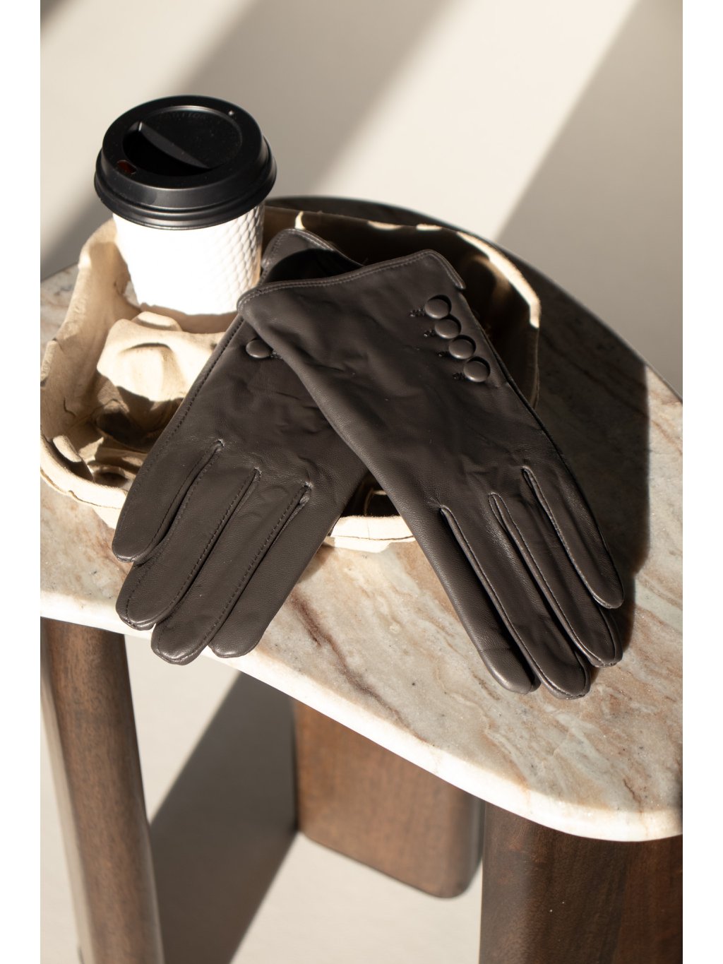 KOŽENÉ RUKAVICE S KNOFLÍČKY dark grey