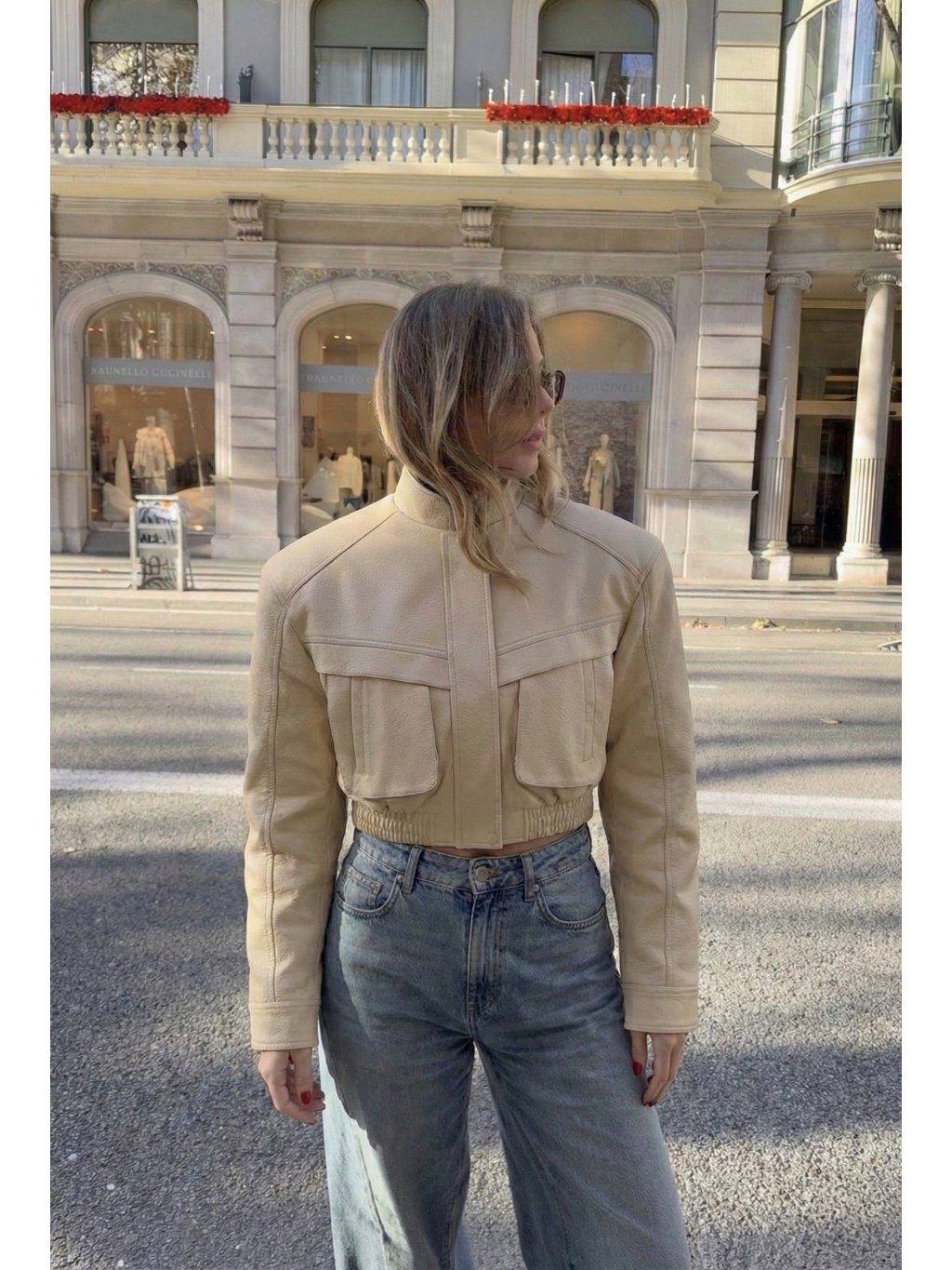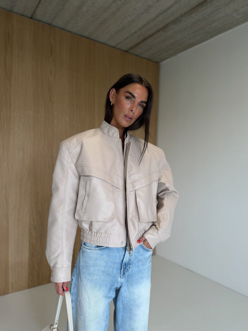 KOŽENKOVÁ BUNDA S VYCPÁVKAMI beige