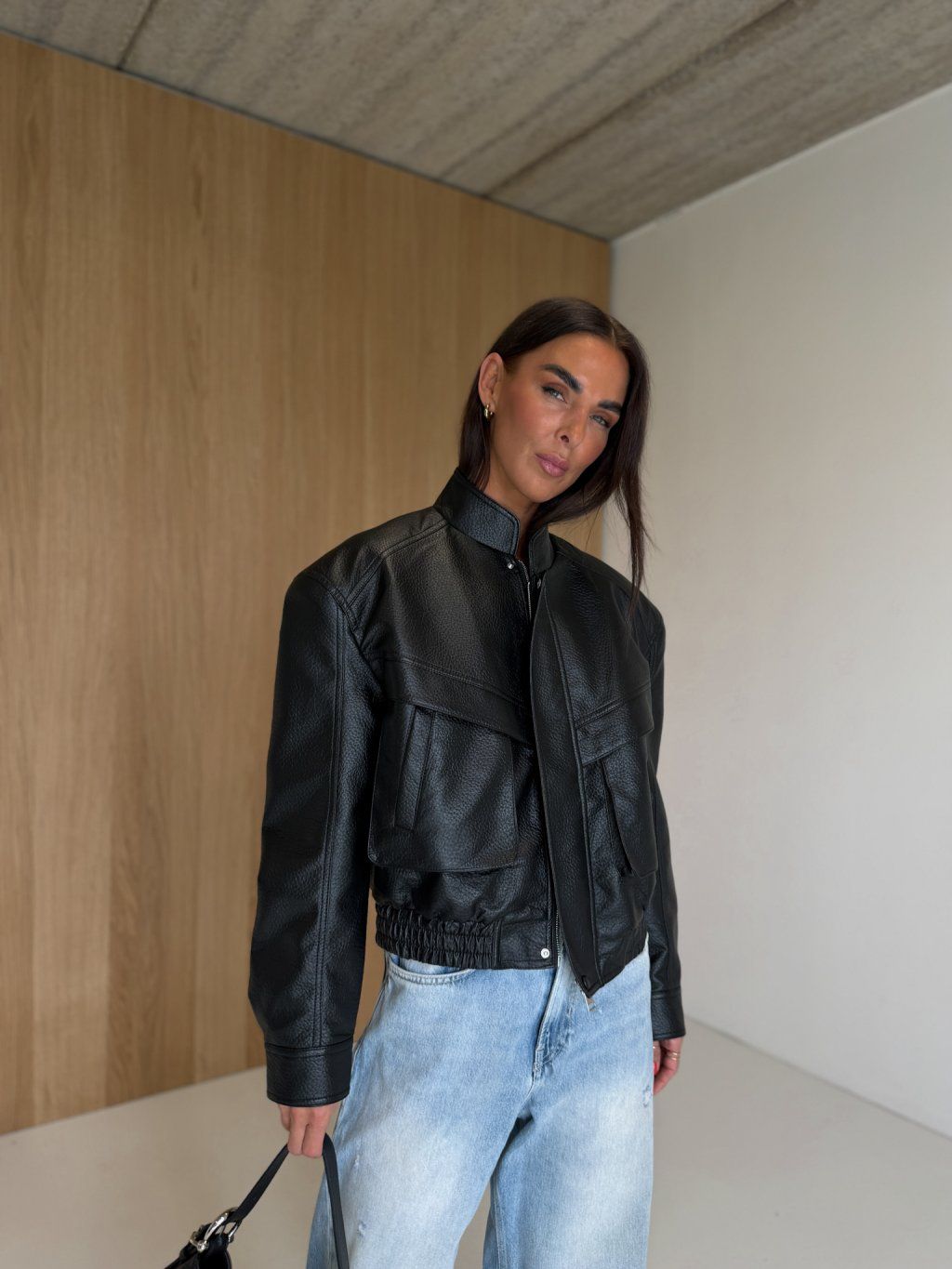 KOŽENKOVÁ BUNDA S VYCPÁVKAMI black