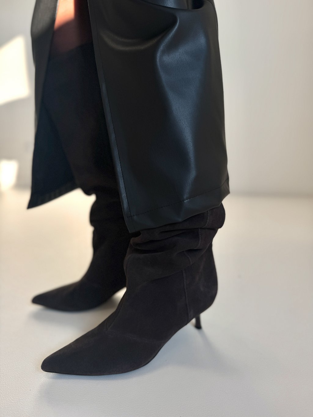 KOŽENKOVÁ MIDI SUKNĚ black