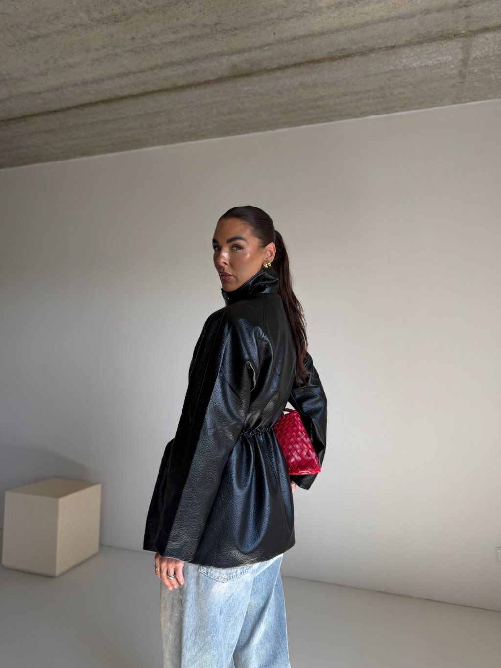 Bunda se dá v pase stáhnout do gumičky.