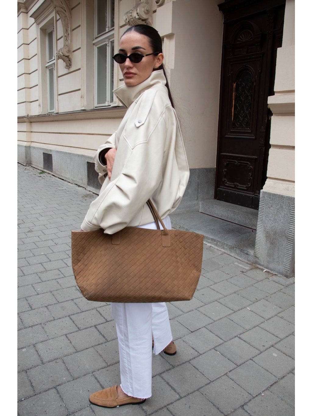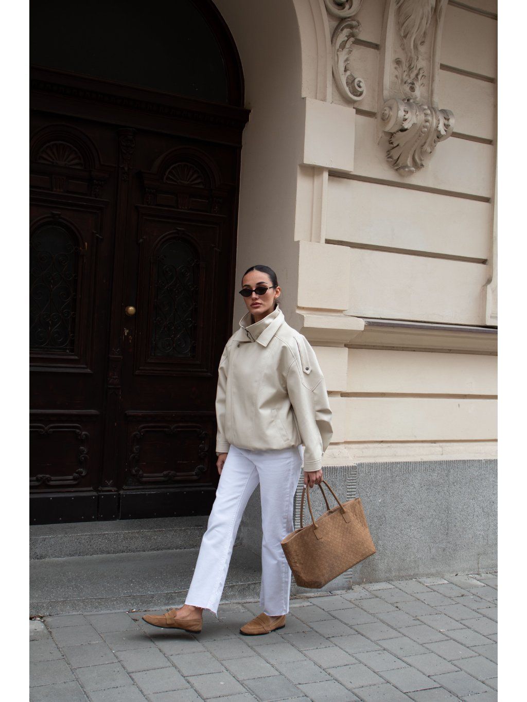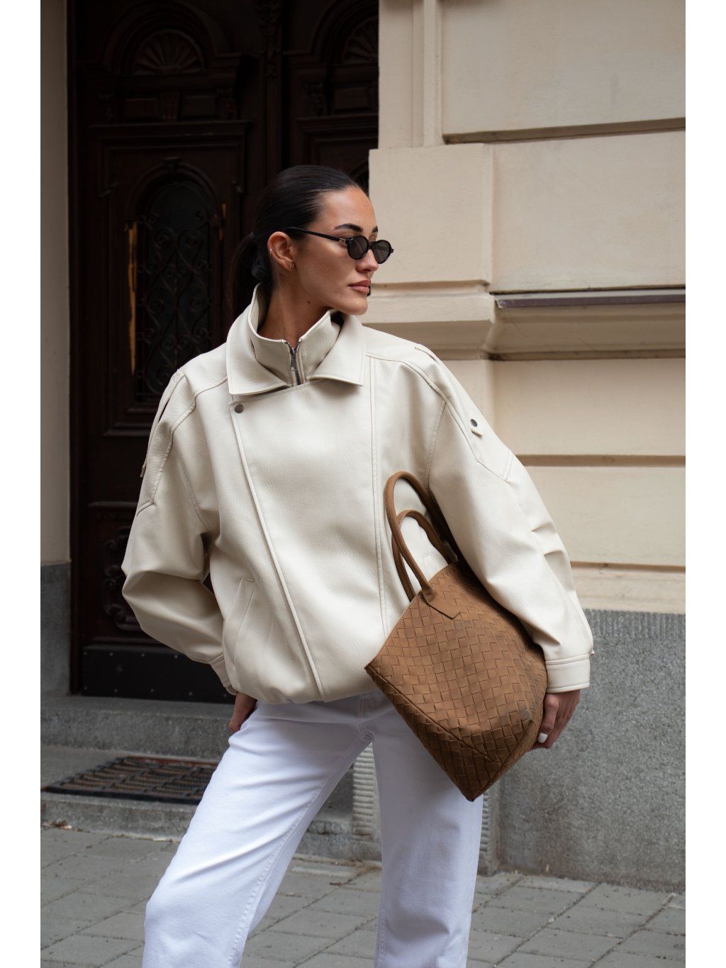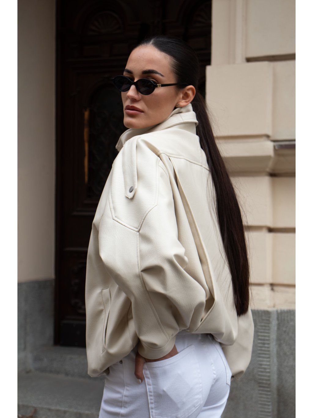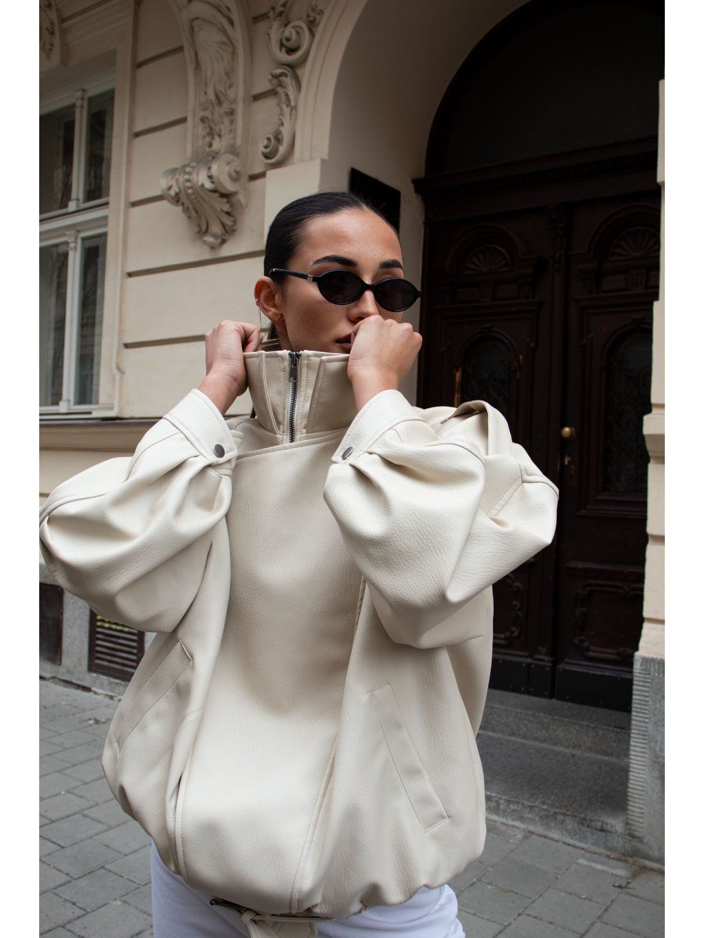 KOŽENKOVÝ BOMBER SE STOJÁČKEM cream