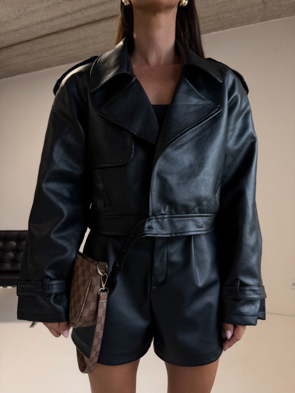 KOŽENKOVÝ KŘIVÁK S RAMENNÍMI VÝLOŽKAMI black