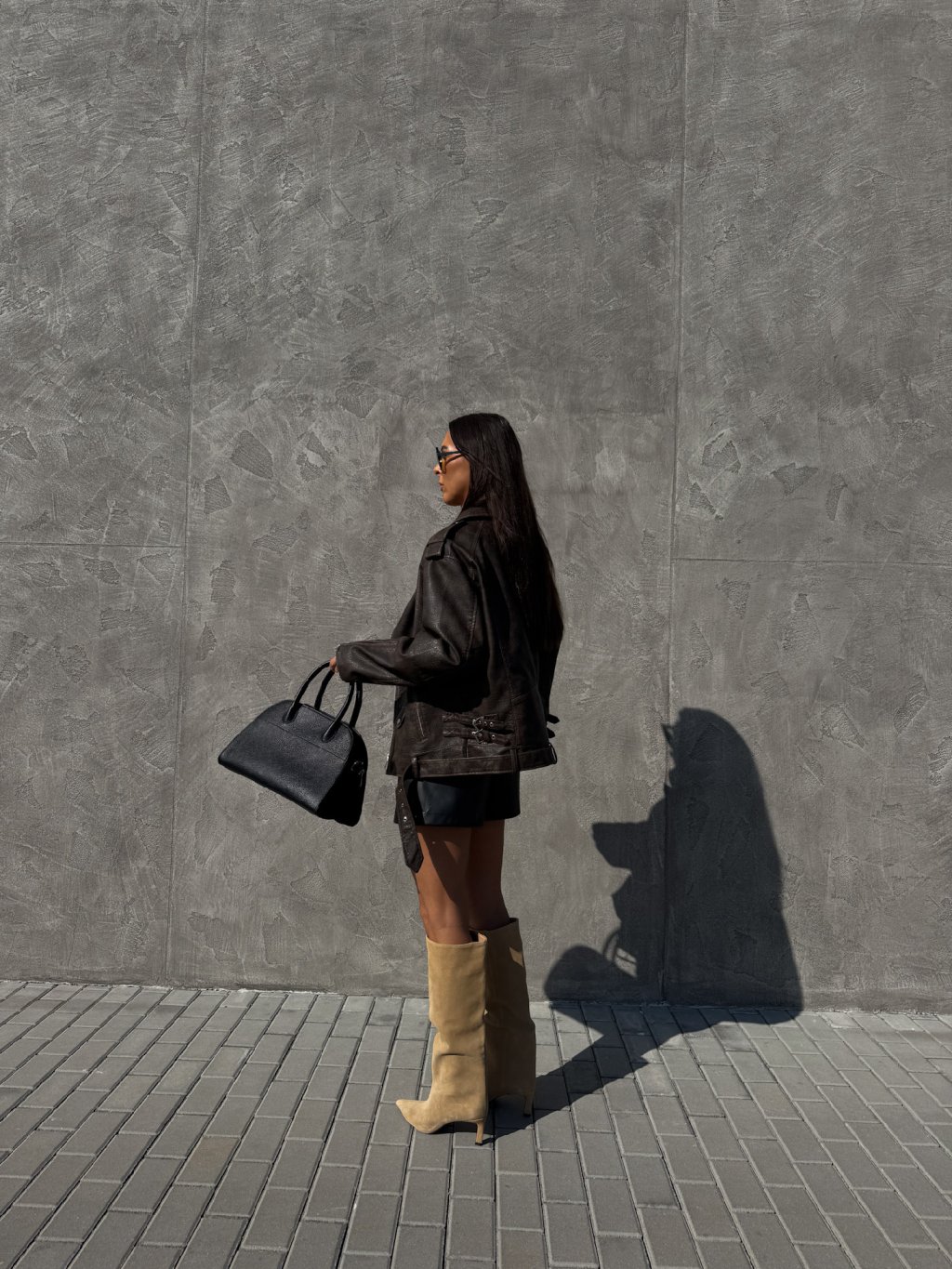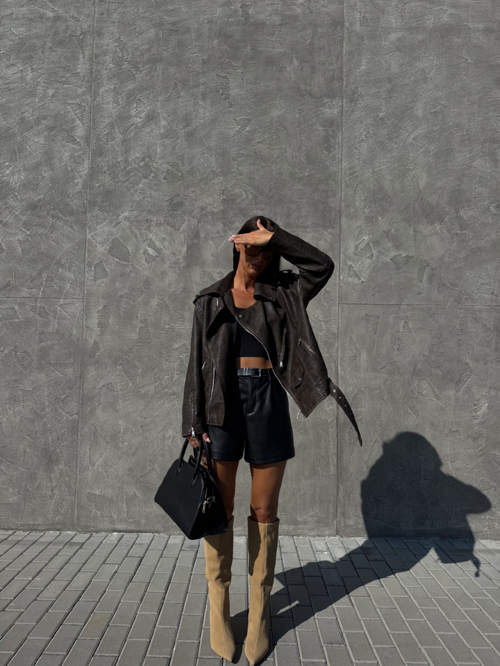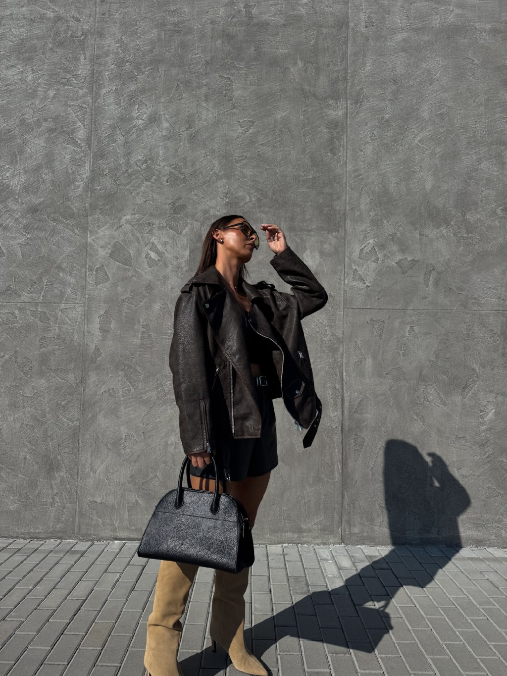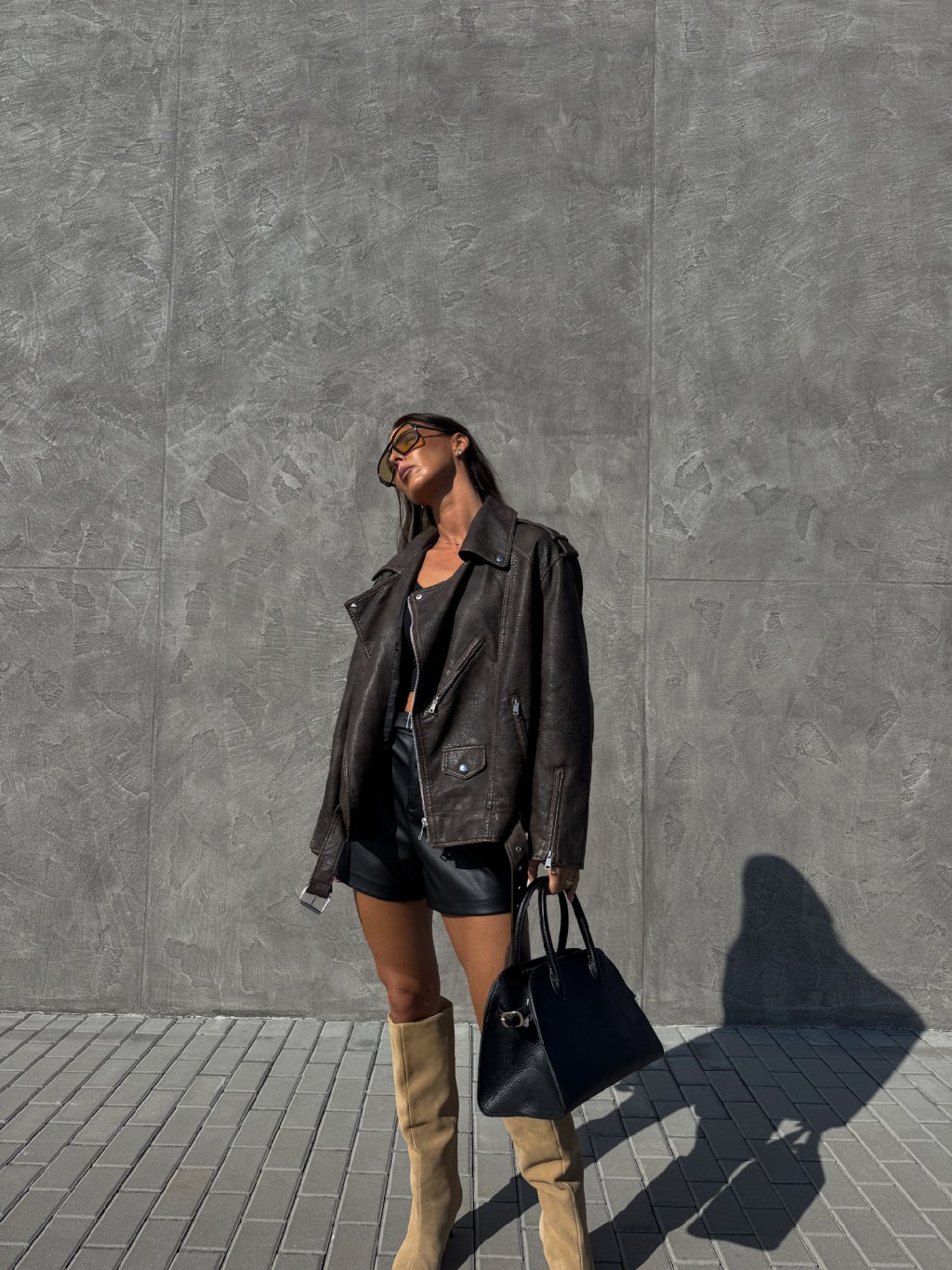KOŽENKOVÝ OVERSIZED KŘIVÁK brown