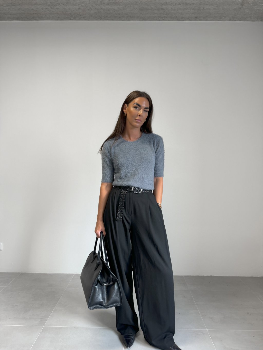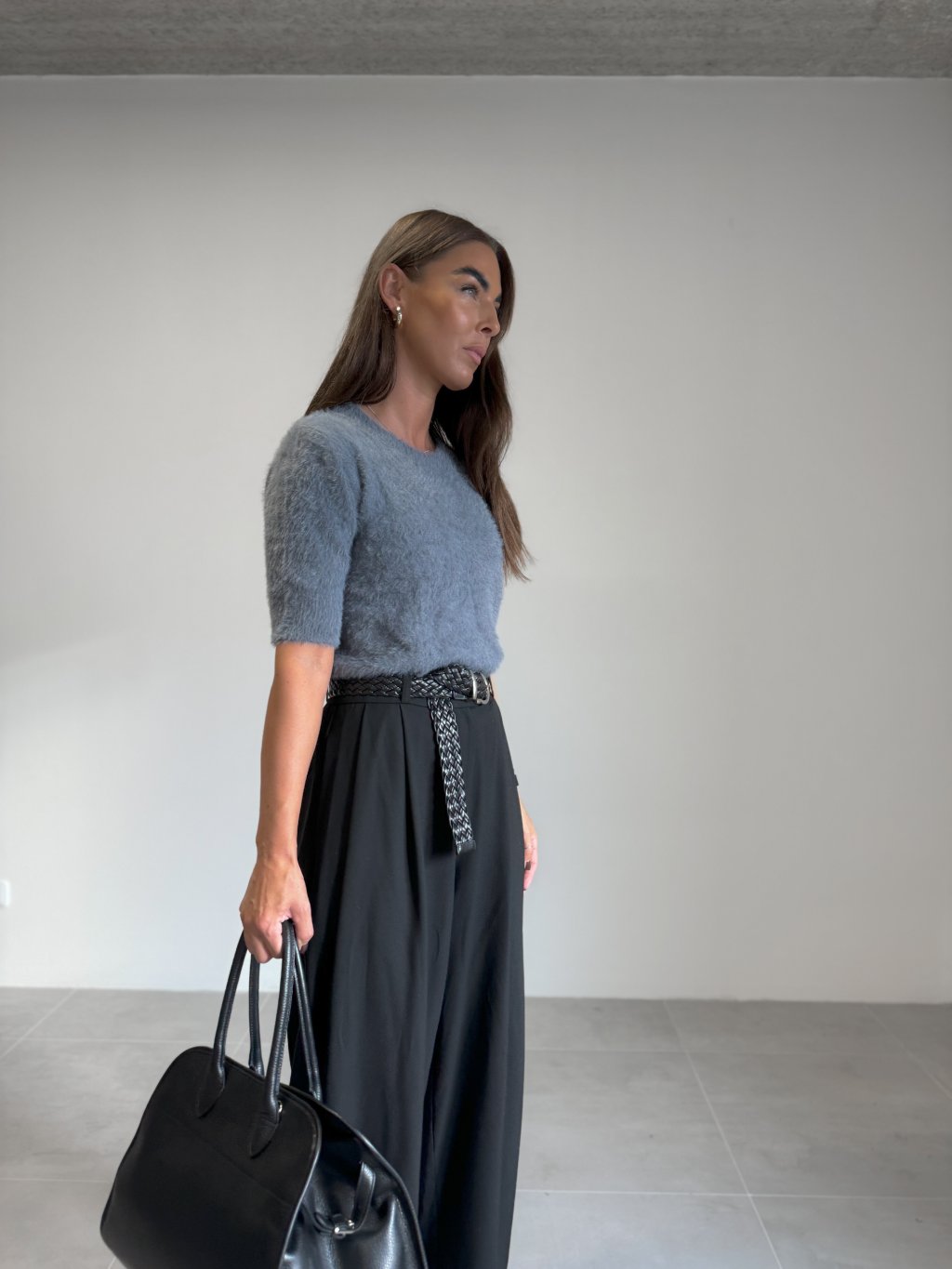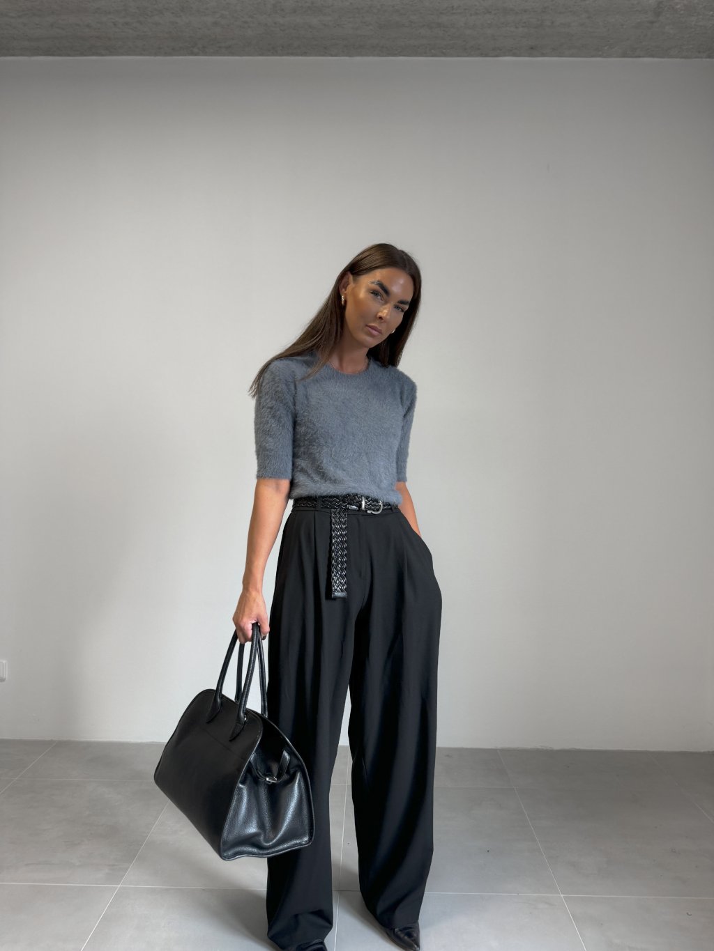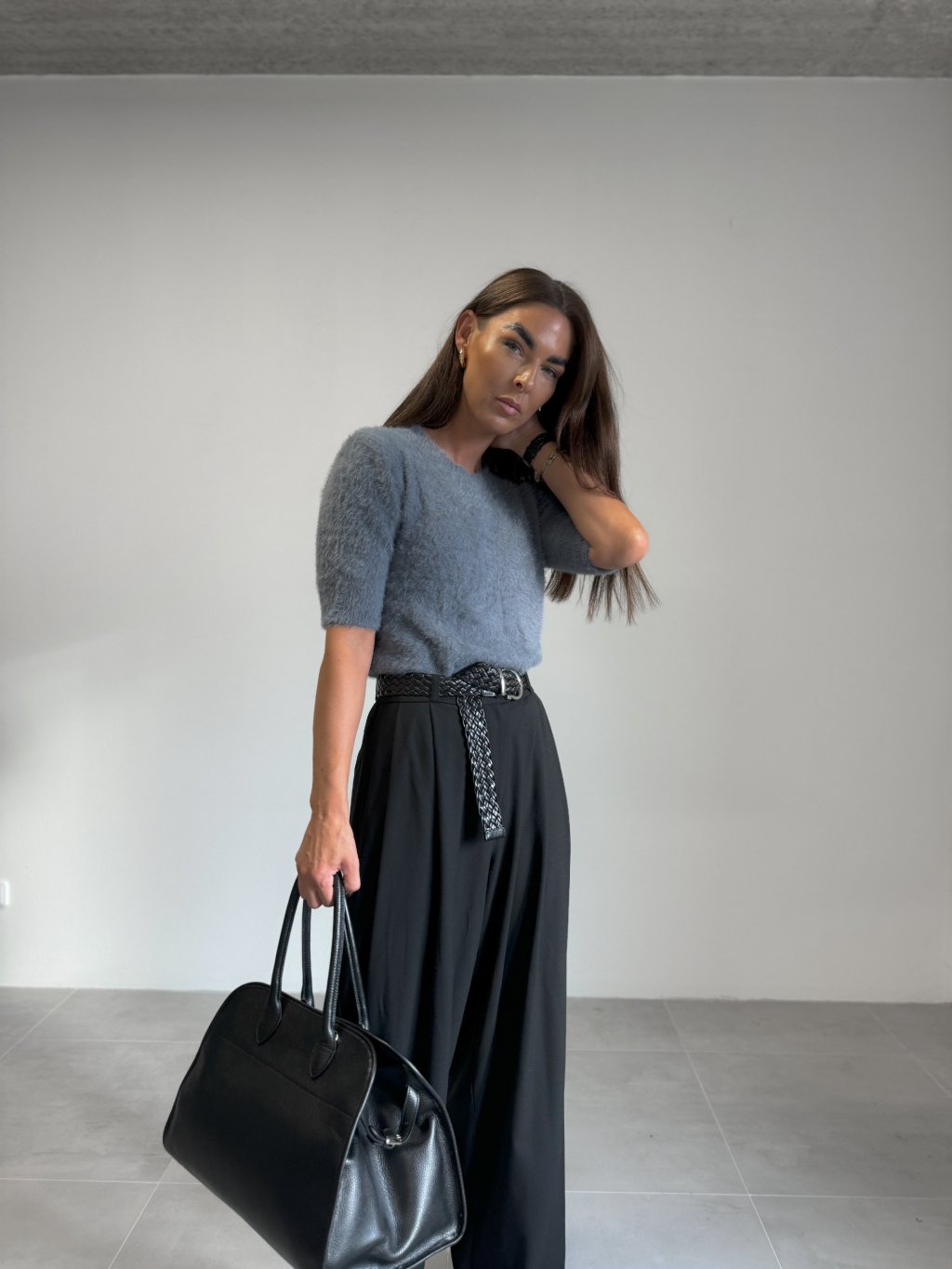| Modelka měří 173 cm, váha 56 kg. Běžně nosí velikost S/M a oversized oblečení L. |